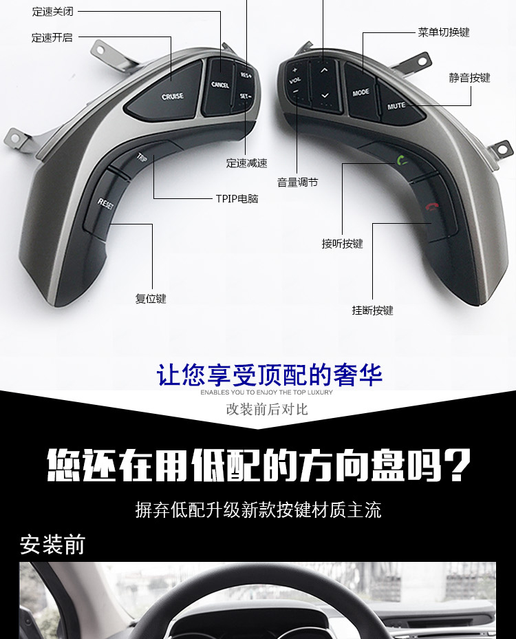 答:巡航功能全部朗动均能用,定速巡航功能本来是你原车行车电脑就配有,而不是加装,按键的作用只是开关,厂家只是为了区别高低配置的车把这多功能按键去掉了而已,就等于你买的电脑,没给你配键盘一个道理,所以不存在不安全的问题,放心使用.手动自动均能实现.
