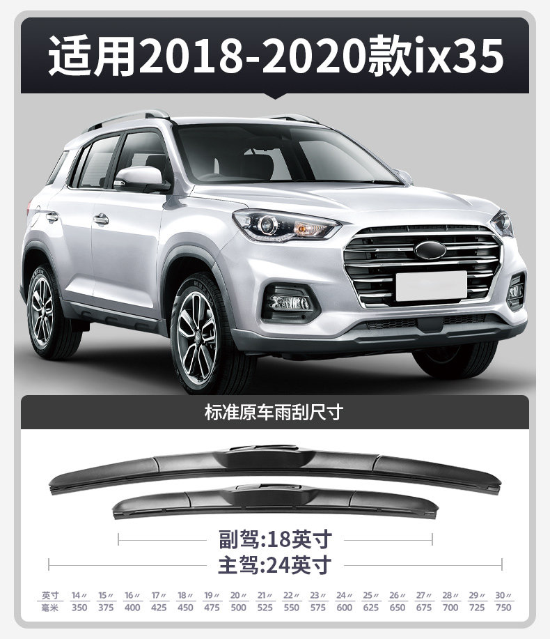 ДомМагазинАвтомобильные дворникиОригинальные щетки стеклоочистителя для Beijing Hyundai ix35, модель 2018 года, бескаркасная конструкция, специально для модели ix35i.