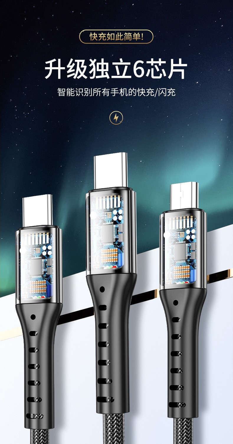 快充数据线 一拖三数据线 TYPE-C数据线 磁吸数据线 流光数据线 磁吸流光 环保数据线 快充 液态硅胶 白色 黑色 红色 金色 车载充电线