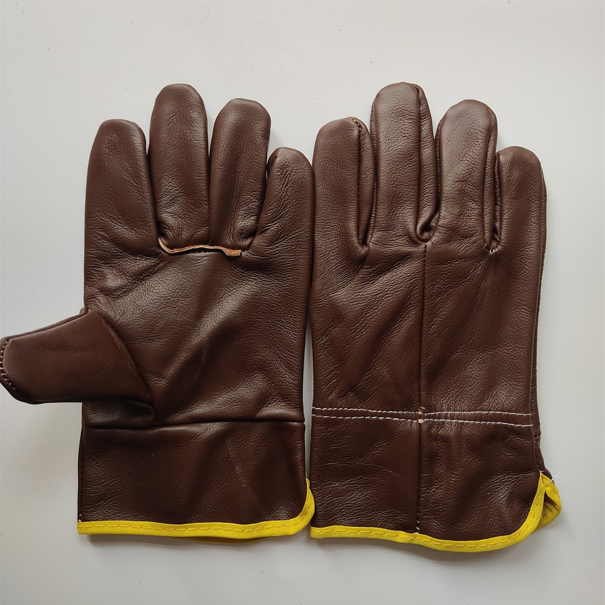 材质:采用进口深色牛头层皮缝制拇指,无缝食指设计。