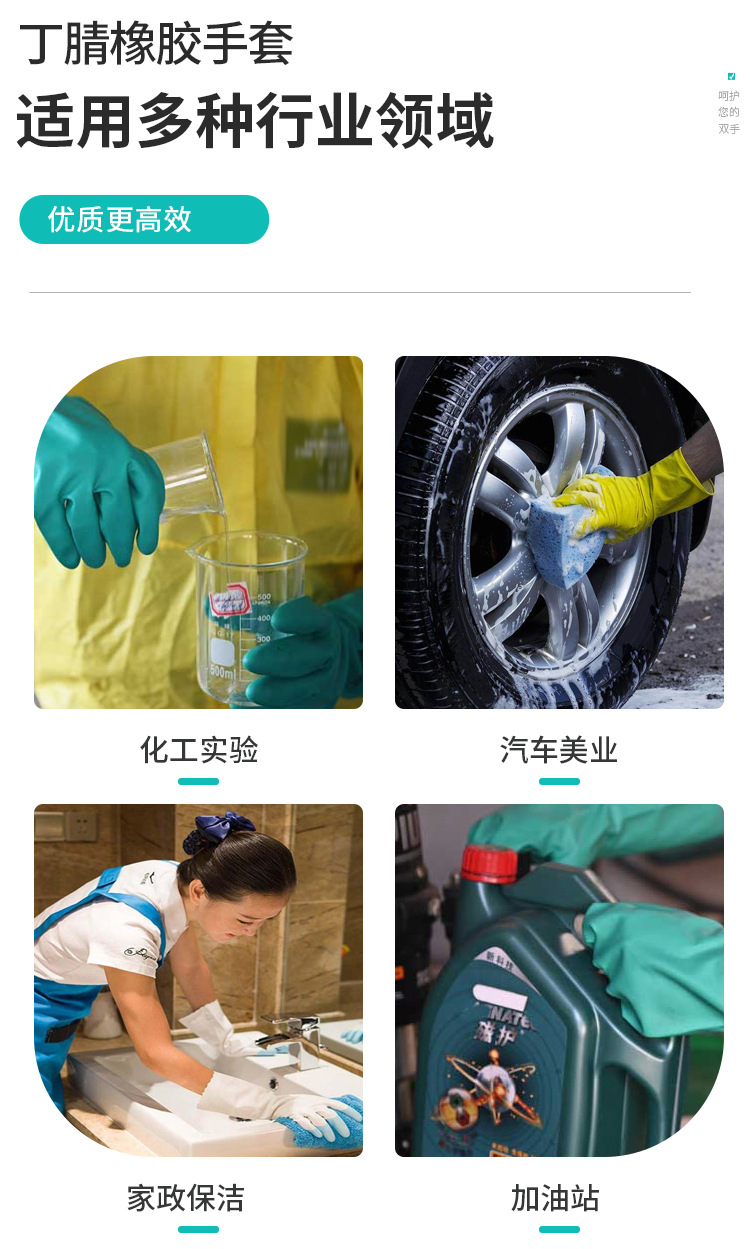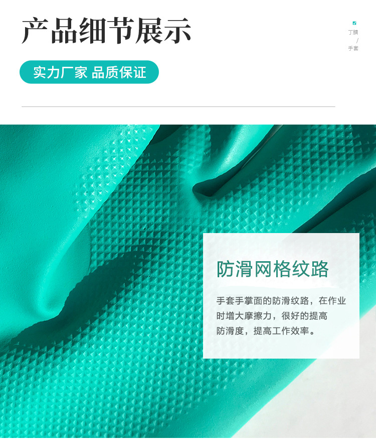 4、该产品选用适量的耐酸碱材料,较一般同类手套有较好的耐酸碱性能。