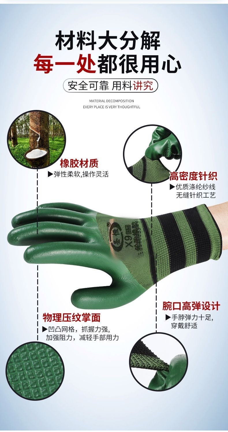 ДомМагазинПерчатки, стойкие к порезамПерчатки рабочие из натуральной резины с тиснением, с полным покрытием и полурукавами, из латекса, устойчивые к порезам, дышащие, для защиты труда, нескользящие, мягкие.