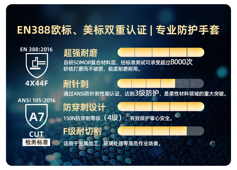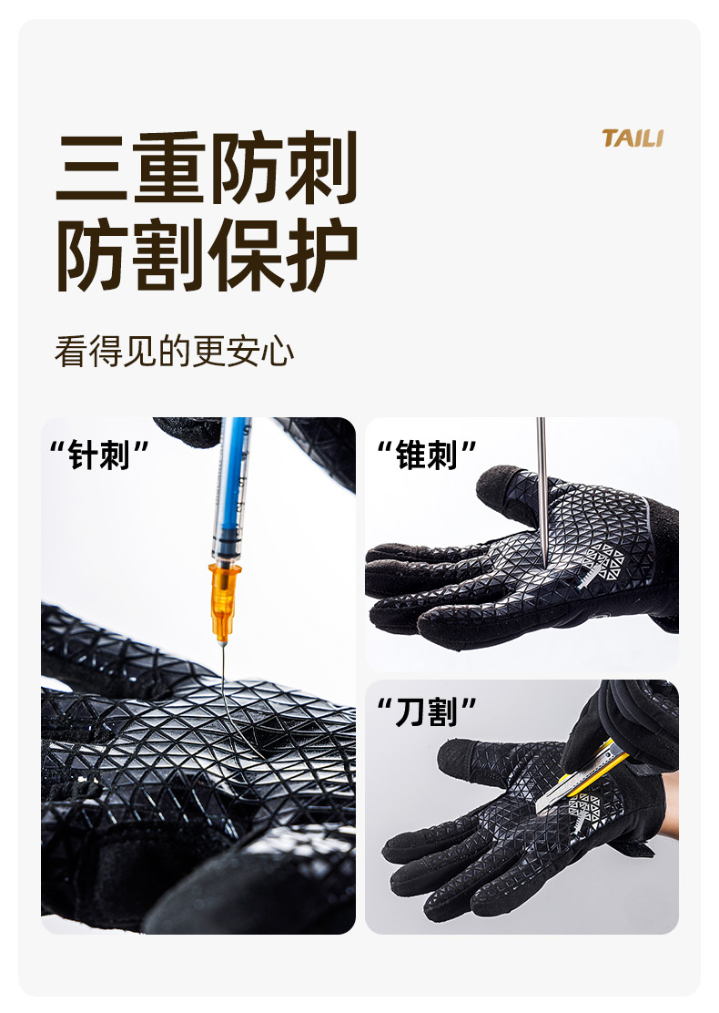| сортировать по цвету | 3.0 Устойчивы к проколам (Уровень 3) / Устойчивы к порезам (A7 и F) / Противоскользящий силикон по всей длине / Сенсорный экран с тремя пальцами / Отводят пот и пропускают воздух; 1.0 Утолщенные промышленные перчатки, устойчивые к ударам и тряске. |