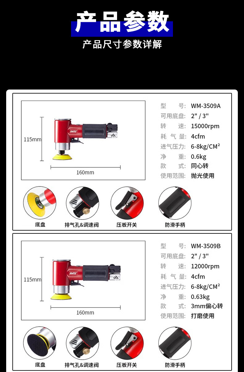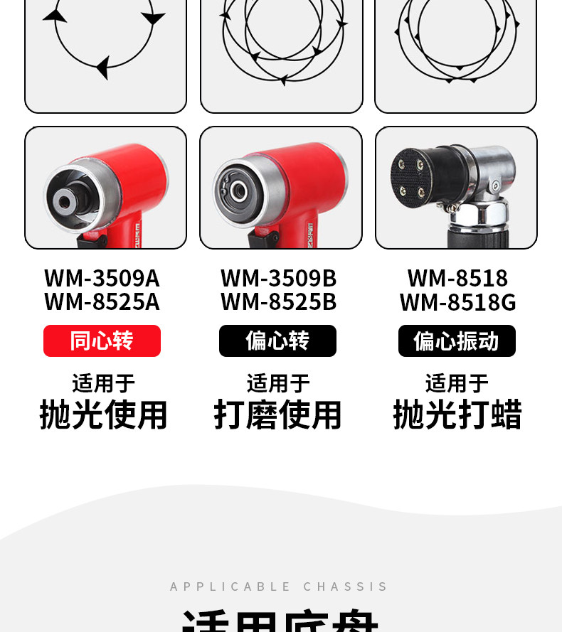 | сортировать по цвету | Машинки для шлифовки наждачной бумагой WM-8525A (концентрическое вращение) может использовать шлифовальные диски диаметром 2 дюйма и 3 дюйма, WM-8525B (эксцентрическое вращение) может использовать шлифовальные диски диаметром 2 дюйма и 3 дюйма, WM-8521A (концентрическое вращение) может использовать шлифовальные диски диаметром 2 дюйма и 3 дюйма, WM-8521B (эксцентрическое вращение) может использовать шлифовальные диски диаметром 2 дюйма и 3 дюйма, WM-3509A (концентрическое вращение) может использовать шлифовальные диски диаметром 2 дюйма и 3 дюйма, WM-3509B (эксцентрическое вращение) может использовать шлифовальные диски диаметром 2 дюйма и 3 дюйма, Точечная шлифовальная машина WM-8518 (подходит для наждачной бумаги толщиной 1 дюйм), Точечная шлифовальная машина WM-8518G (подходит для наждачной бумаги толщиной 1 дюйм). |