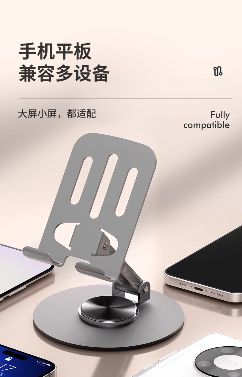 ДомМагазинКронштейн для мобильных телефоновПодставка для планшета из алюминиевого сплава, вращающаяся на 360°, многофункциональная, регулируемая настольная подставка из алюминиевого сплава.