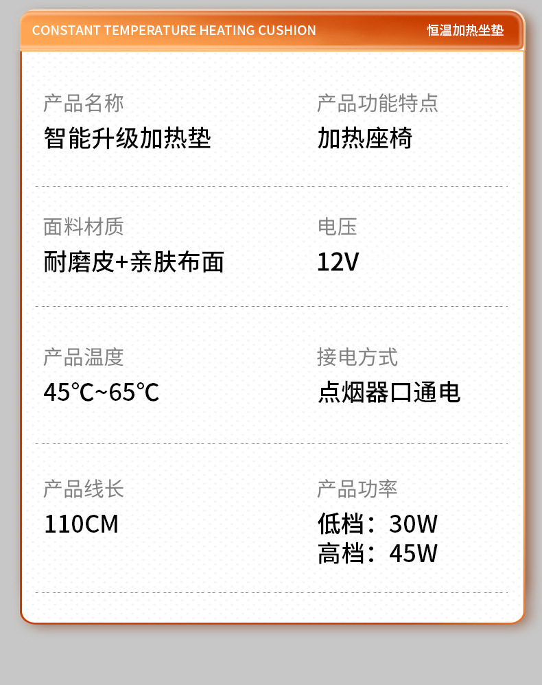 【产品名称】:通用型汽车加热坐垫