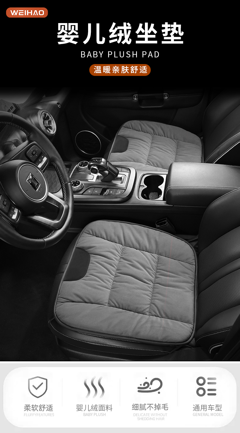 ДомМагазинЧехлы для автомобильных сиденийПодушка на сиденье автомобиля, флисовая для младенцев, зимний комплект из трех предметов, всесезонная, цельная, без спинки, универсальная подушка/чехол на сиденье.