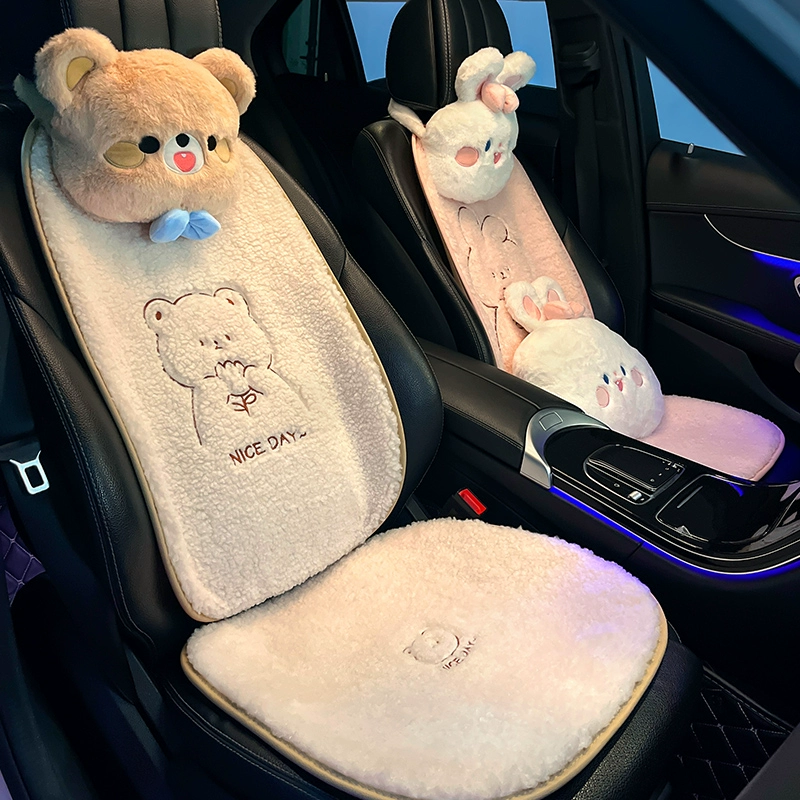 ДомМагазинЧехлы для автомобильных сиденийПодушки для автомобильных сидений из овечьей шерсти, зимний плюш, новый стиль 2025 года, высококачественные и симпатичные, цельные чехлы на передние и задние сиденья для женщин.