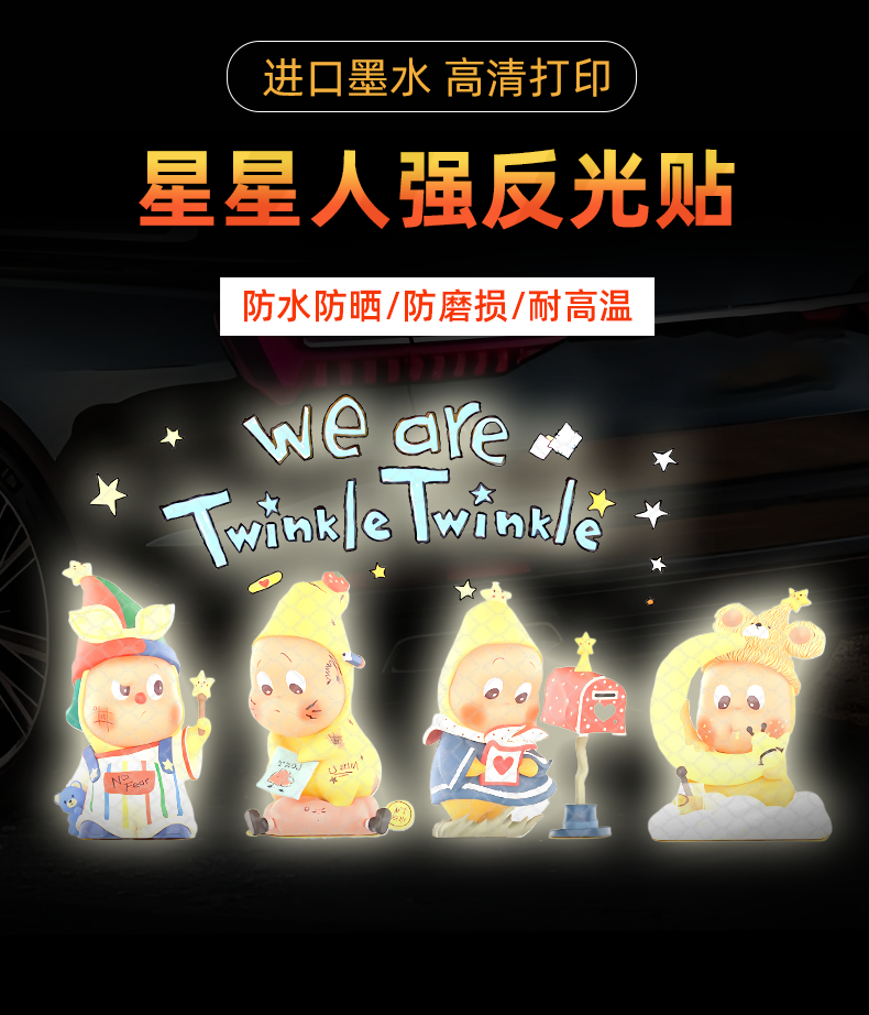 ДомМагазинУкрашение автомобиляПодходит для симпатичных героев мультфильмов, светоотражающих и водонепроницаемых декоративных наклеек для автомобильных стекол, наклеек, защищающих от царапин.