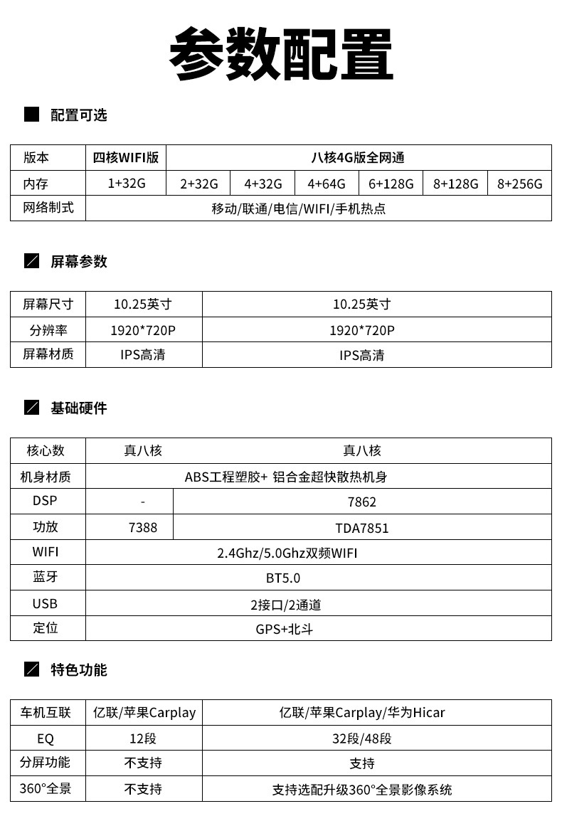 | Спецификация | Версия Octa-core 4G с полным сетевым доступом: 4+64G, версия Octa-core 4G с полным сетевым доступом: 6+128G, версия Octa-core 4G с полным сетевым доступом: 4+32G, версия Octa-core 4G с полным сетевым доступом: 8+128G, версия Octa-core 4G с полным сетевым доступом: 8+256G, версия Octa-core 4G с полным сетевым доступом: 2+32G, версия Quad-core WIFI: 1+32G |