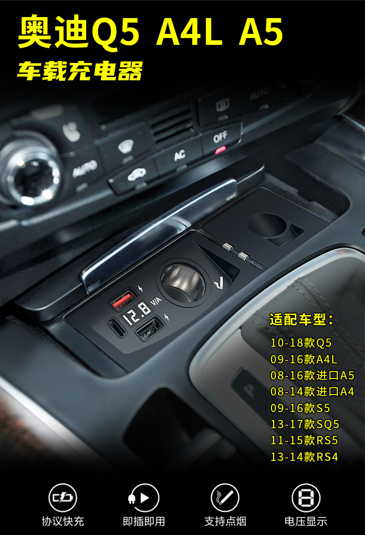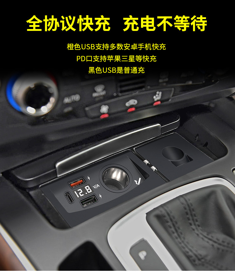 ДомМагазинАвтомобильное зарядное устройствоПодходит для Audi Q5/A4L/A5/RS4S5, автомобильное зарядное устройство с функцией сверхбыстрой зарядки через прикуриватель USB-порт PD
