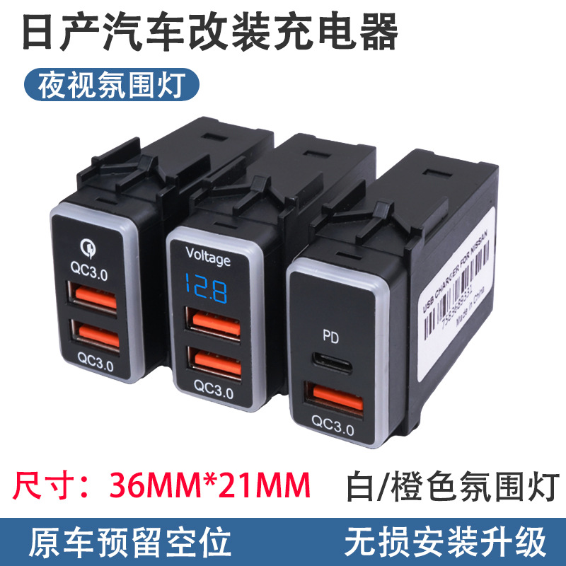 Подходит для Nissan Tiida с интерфейсом быстрой зарядки Dual USB, автомобильное зарядное устройство Sylphy, установка и модификация зарядного устройства PD.