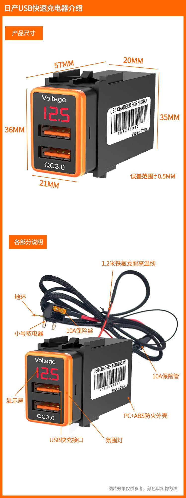 ДомМагазинАвтомобильное зарядное устройствоПодходит для Nissan Tiida с интерфейсом быстрой зарядки Dual USB, автомобильное зарядное устройство Sylphy, установка и модификация зарядного устройства PD.