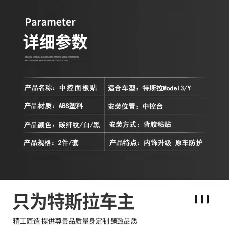 | цвет | Декоративная панель центральной консоли Model 3/Y — белая, Декоративная панель центральной консоли Model 3/Y — с глянцевым карбоновым узором, Декоративная панель центральной консоли Model 3/Y — с матовым карбоновым узором, Декоративная панель центральной консоли Model 3/Y — матово-черная |