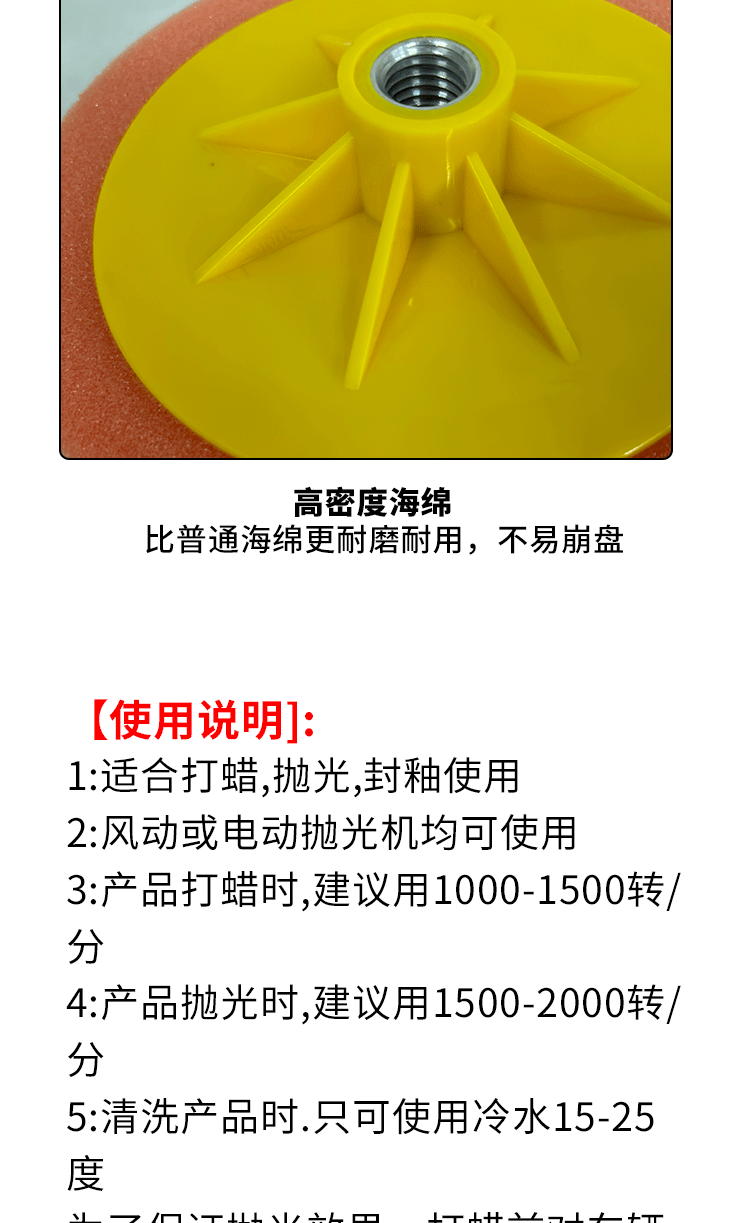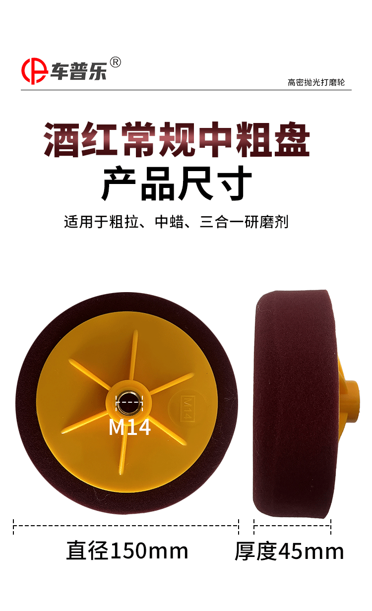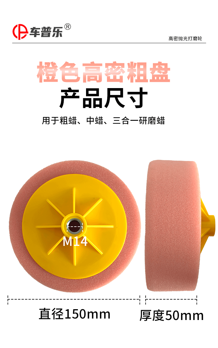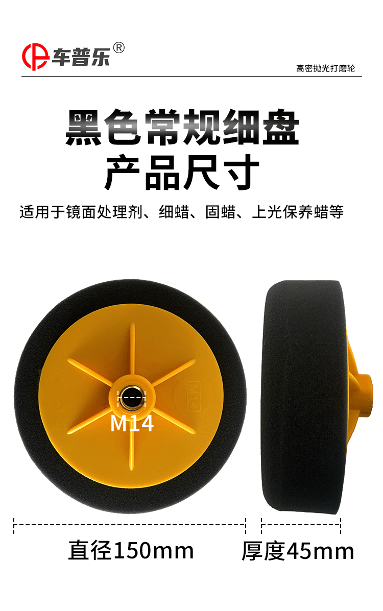 特别提醒: 螺孔分M14和M16(常用M14,默认发M14),因为是专业盘所以海绵分的比较细,粗抛海绵偏硬,棉质略粗,适合抛划痕,削切力非常好,建议配合73 54 中粗蜡使用,中抛和细抛海绵都比较软,区别是中抛海绵略粗适合抛亚光,细抛主要抛太阳纹,镜面亮度,建议配合73和96中细蜡使用(一般都是用细抛,默认发细抛),有不了解的地方也可以咨询客服!!!
