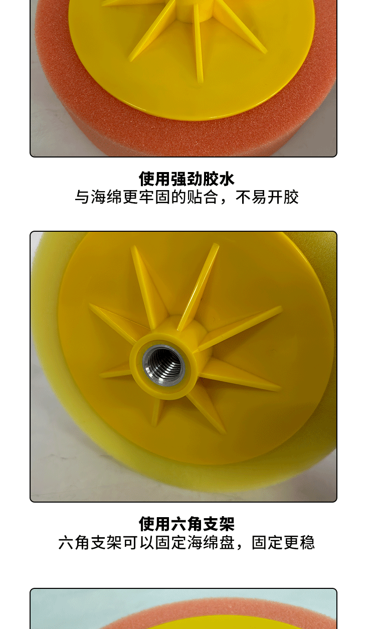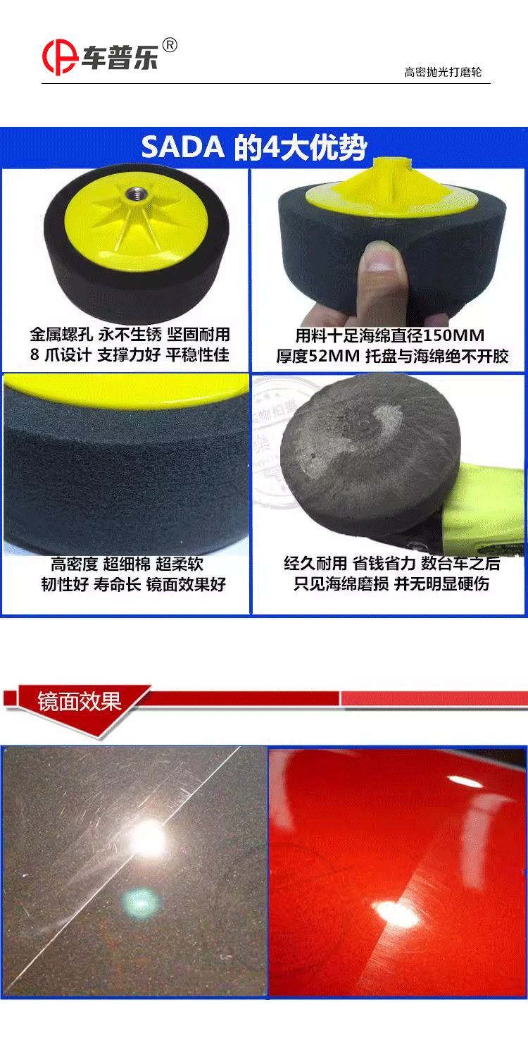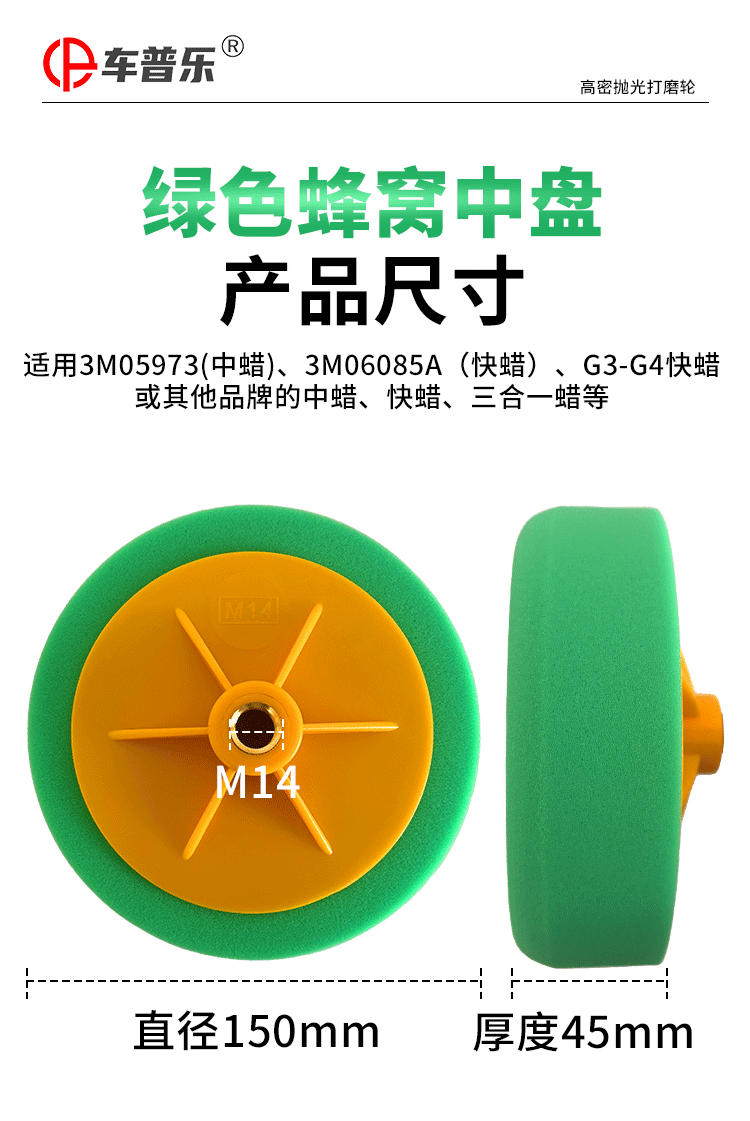 特别提醒: 螺孔分M14和M16(常用M14,默认发M14),因为是专业盘所以海绵分的比较细,粗抛海绵偏硬,棉质略粗,适合抛划痕,削切力非常好,建议配合73 54 中粗蜡使用,中抛和细抛海绵都比较软,区别是中抛海绵略粗适合抛亚光,细抛主要抛太阳纹,镜面亮度,建议配合73和96中细蜡使用(一般都是用细抛,默认发细抛),有不了解的地方也可以咨询客服!!!