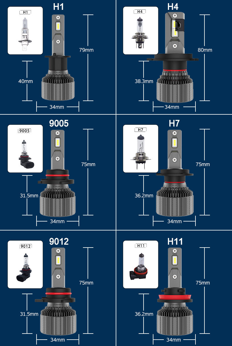 配件编号 : H1/H7/H4/H11/9005/9006/9012