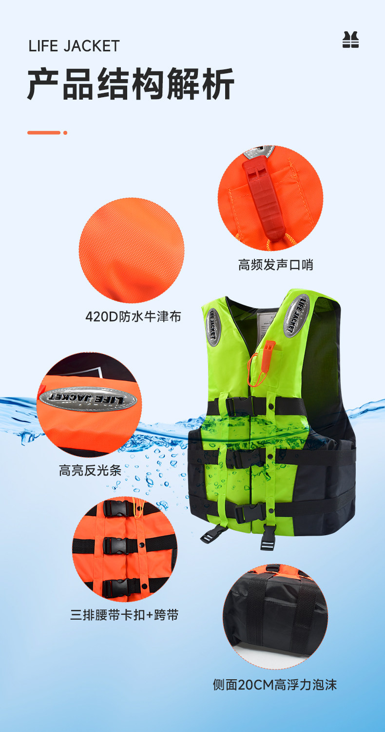 Портативный спасательный жилет для взрослых с высокой плавучестью, профессионально утолщенный, подходит для рыболовных судов, взрослых, детей и пловцов.