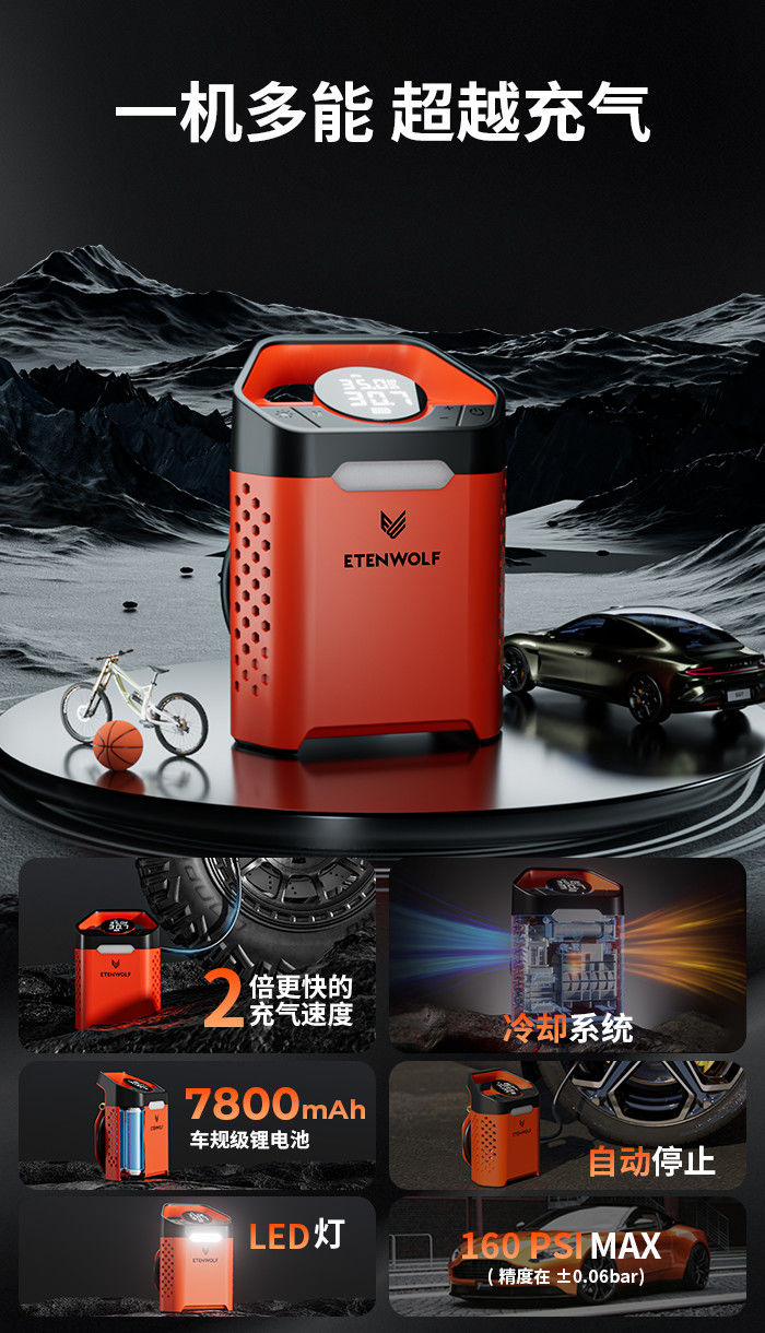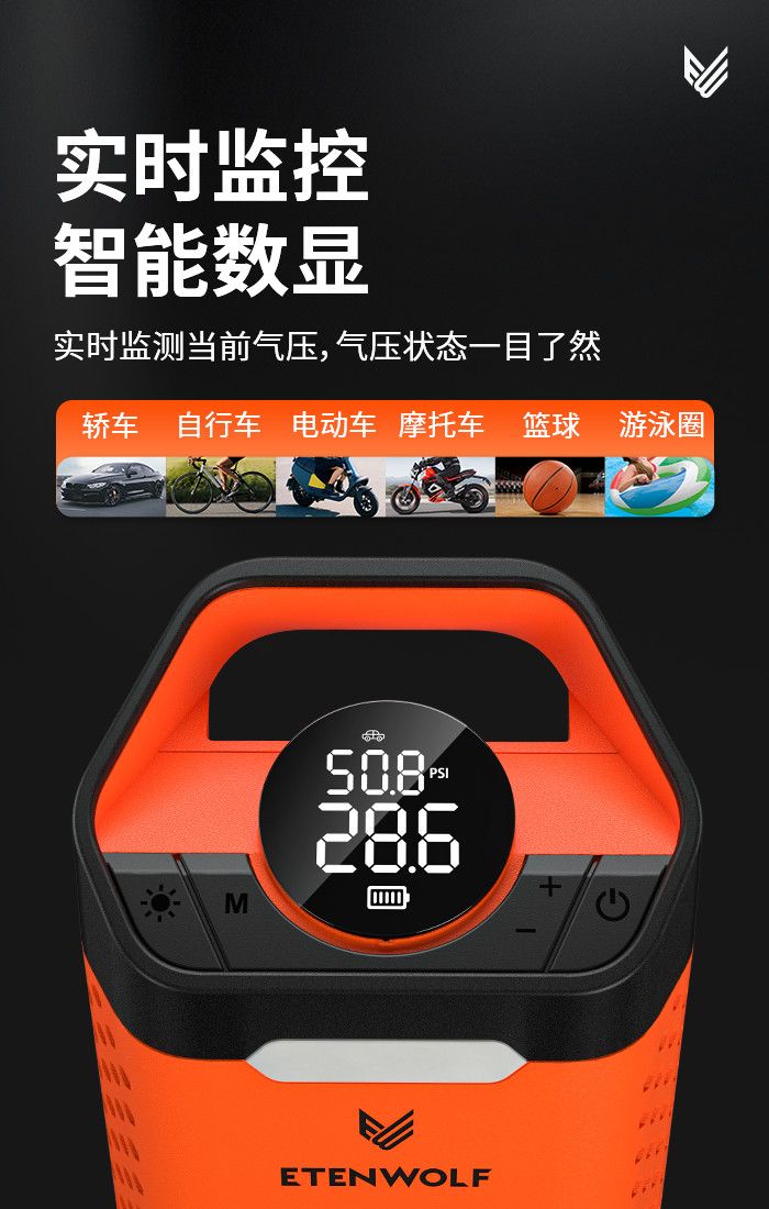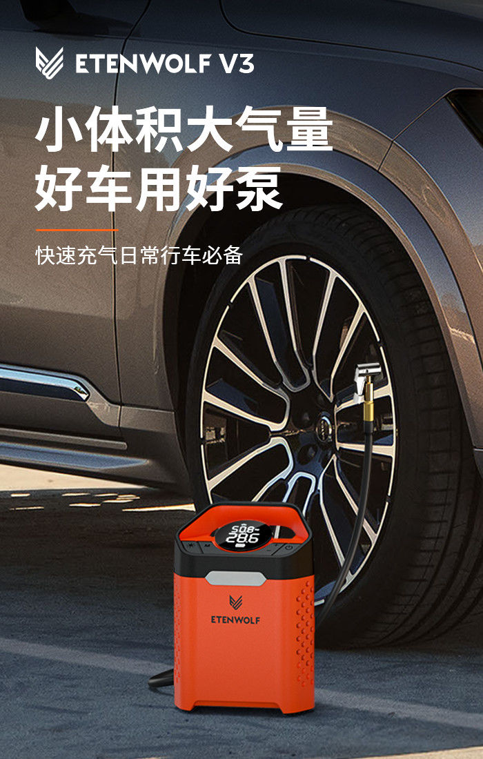 ДомМагазинВоздушный насос, устанавливаемый на транспортное средствоПортативный электрический беспроводной автомобильный воздушный насос ETENWOLF V3 с датчиком давления в шинах
