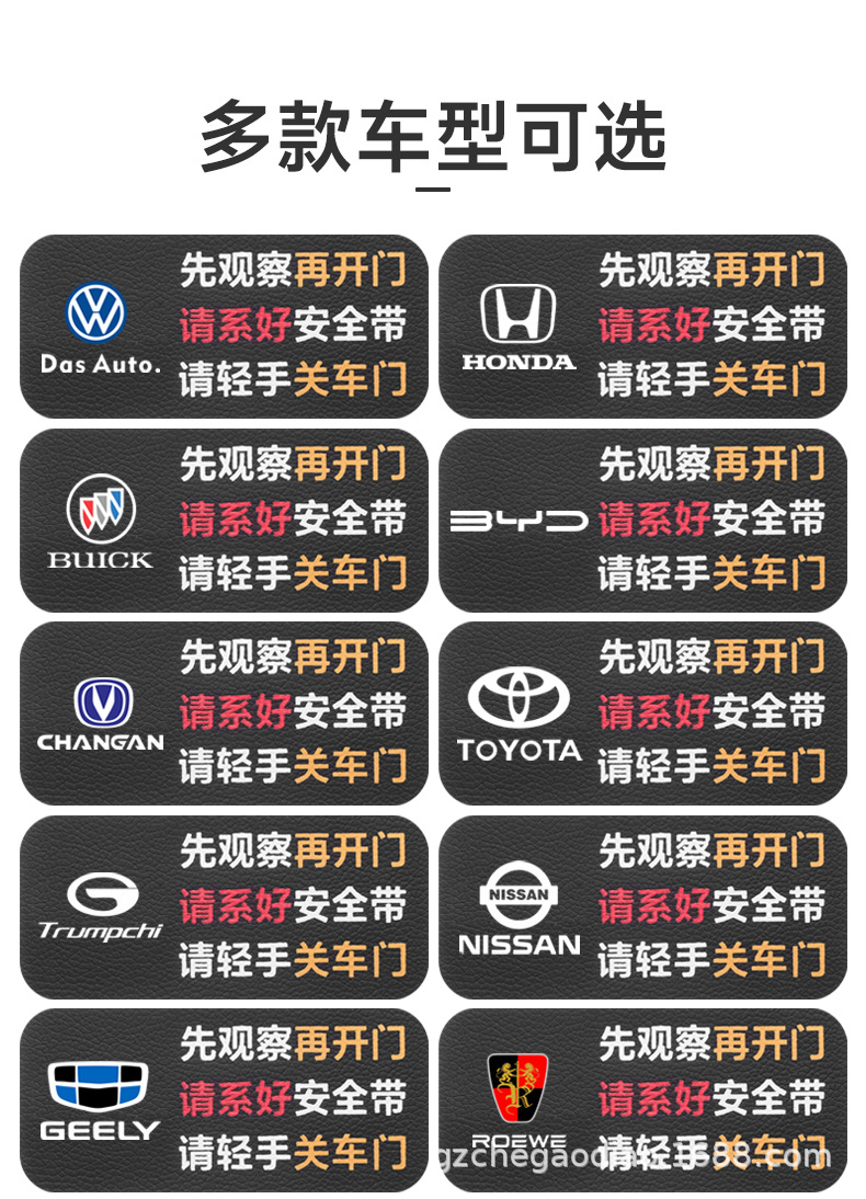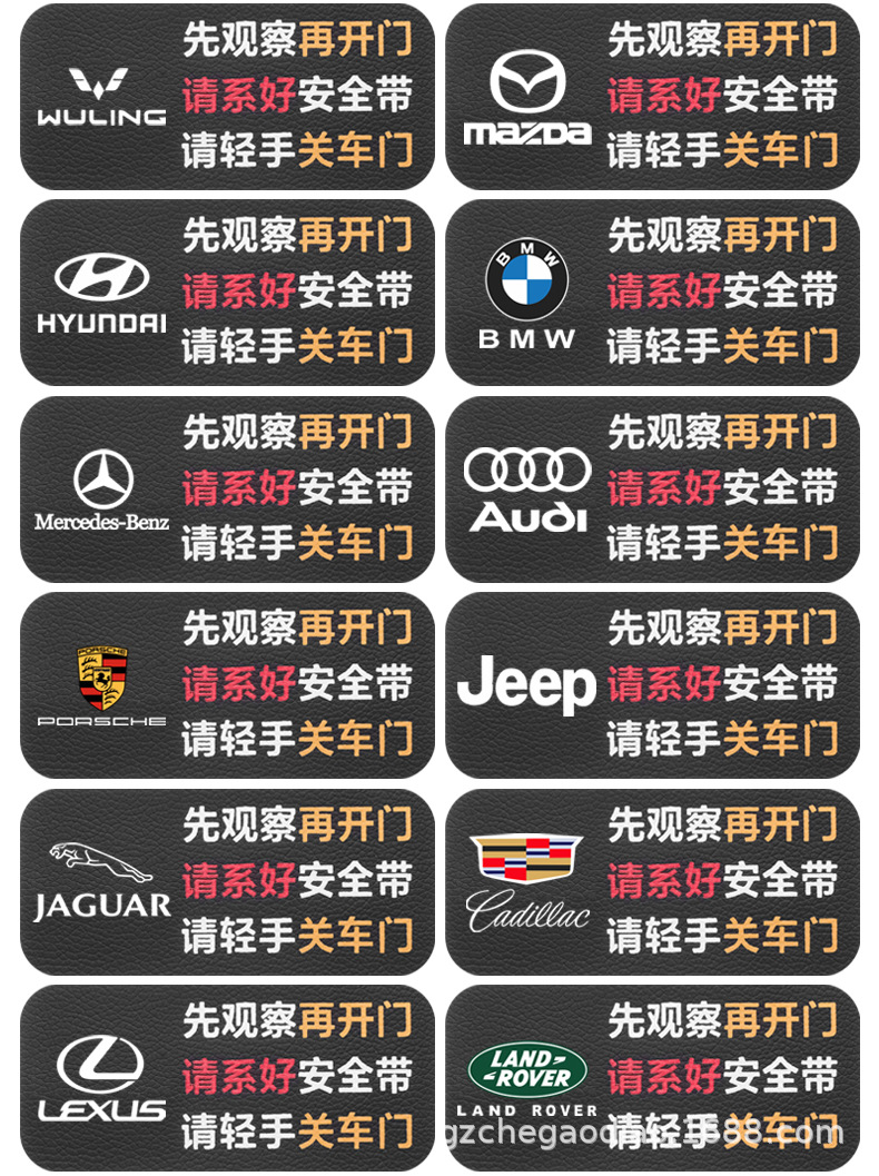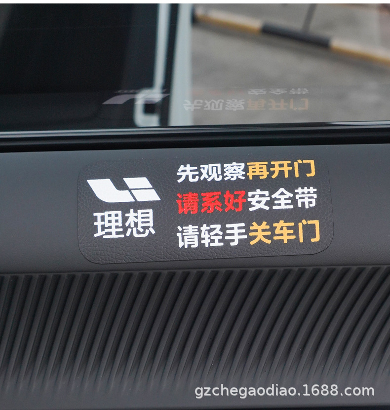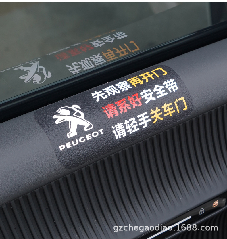 Предупреждающая наклейка для кожаного салона автомобиля. Наклейка с напоминанием об открытой двери. Наклейка с напоминанием о необходимости пристегнуть ремень безопасности. Предупреждающая наклейка для автомобиля.