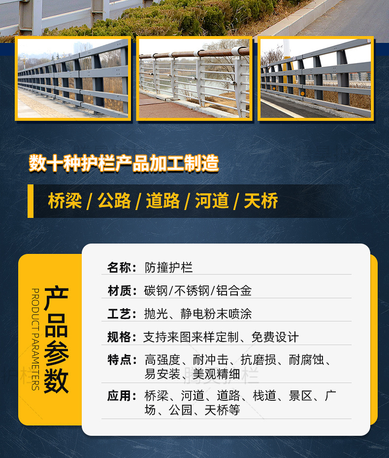 ДомМагазинЗащитное ограждениеПроизводство дорожных и мостовых ограждений для предотвращения столкновений из литой стали с высоким содержанием углерода, утолщенное мостовое ограждение с распылением Q235