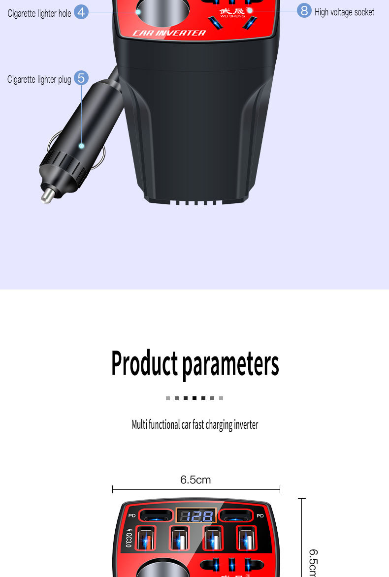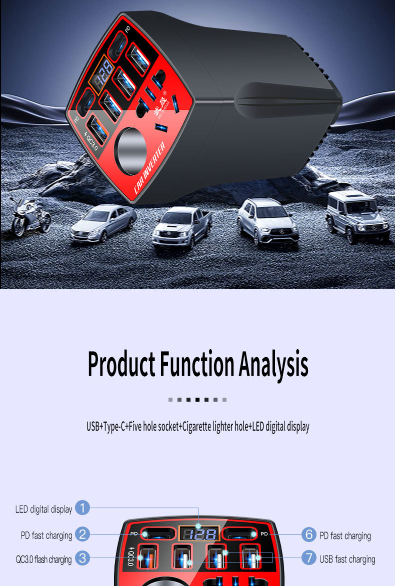 | модель | Английская версия [Zhi Zun Red Dual PD Port] Нет стандартного цифрового дисплея, английская версия [Zhi Zun Red Dual PD Port] Цифровой дисплей + быстрая зарядка QC3.0 |