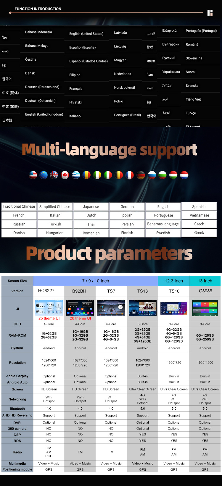 TS18 6+128G CARPLAY, TS7 1+32G, TS18 4+64G CARPLAY, TS18 2+32G CARPLAY