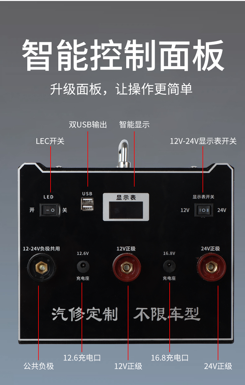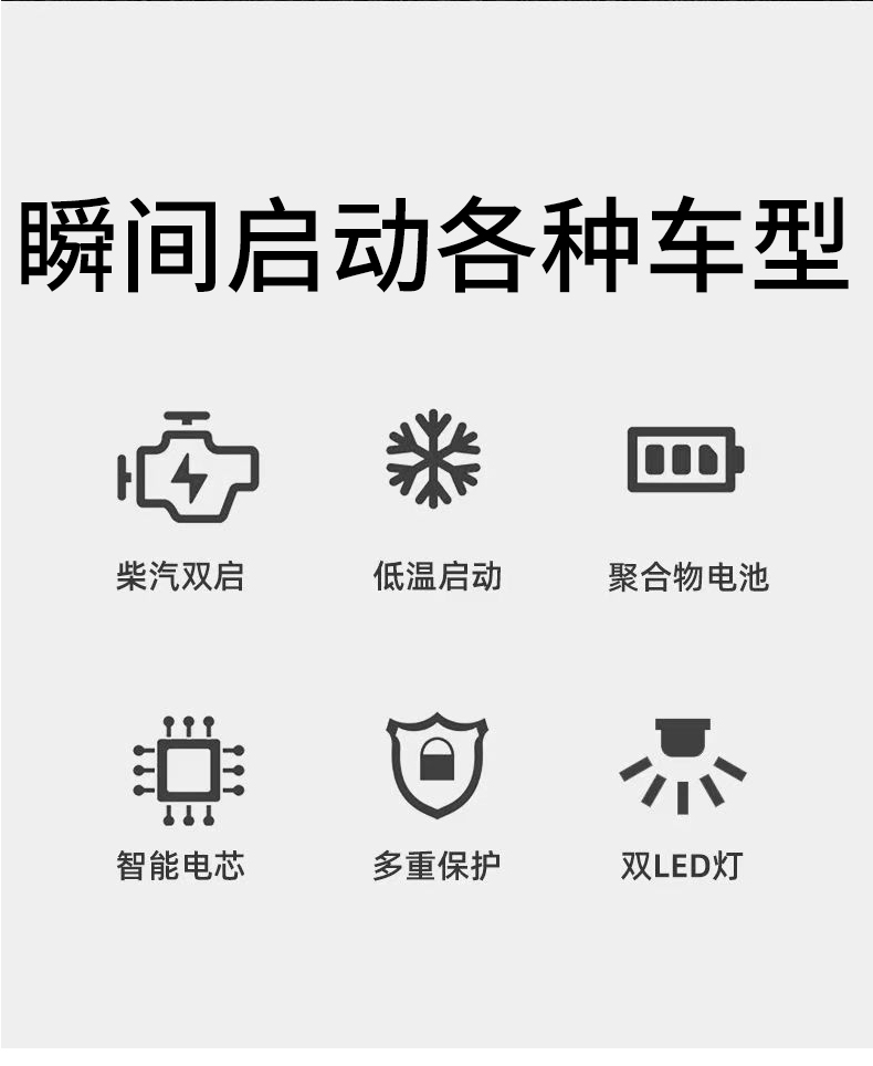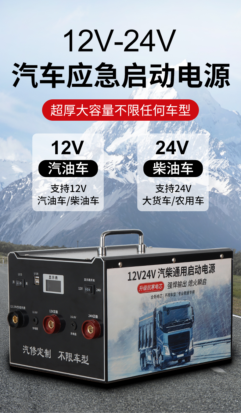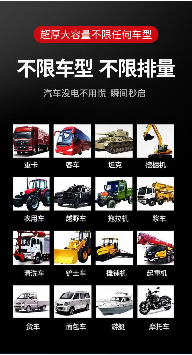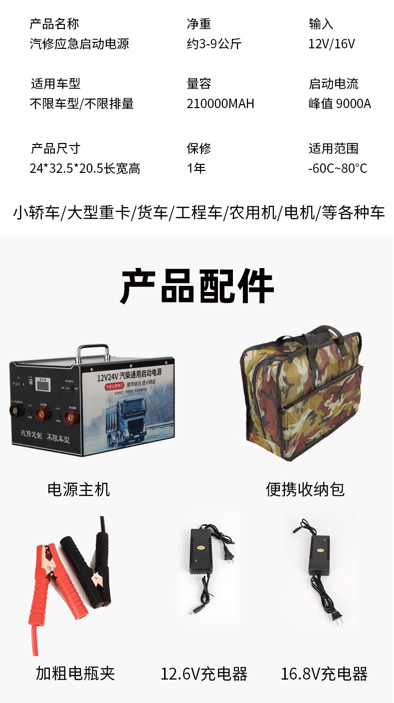 | Технические характеристики продукта | 12 В бензин 380 000, 12 В усиленный 600 000, 12 В авторемонтная индивидуальная версия 800 000, 12 В дизельная индивидуальная версия 1 100 000 (бензиновая и дизельная универсальная), 12/24 В универсальная стандартная версия 700 000, 12/24 В универсальная модернизированная версия 800 000, 12/24 В универсальная улучшенная версия 1 000 000, защищенная от обратного соединения 12/24 В универсальная расширенная версия 1 100 000, 12/24 В универсальная флагманская версия 1 200 000, 12/24 В универсальная 1, 4 миллиона юаней авторемонтная индивидуальная версия; 2 миллиона юаней неограниченный рабочий объем 14-компонентный 12/24 В антифриз (северный большой автопарк); 2, 5 миллиона юаней — антифриз из 14 деталей 12/24 В, неограниченный рабочий объем (Северный авторемонт); 3 миллиона юаней — антифриз из 21 детали 12/24 В, неограниченный рабочий объем (Северная спасательная служба); 4 миллиона юаней — антифриз из 21 детали 12/24 В, неограниченный рабочий объем (Северный инженерный автопарк); бензиновый двигатель 12 В объемом 3, 0 л и ниже со стартером (малый автомобиль). |
