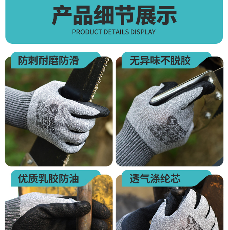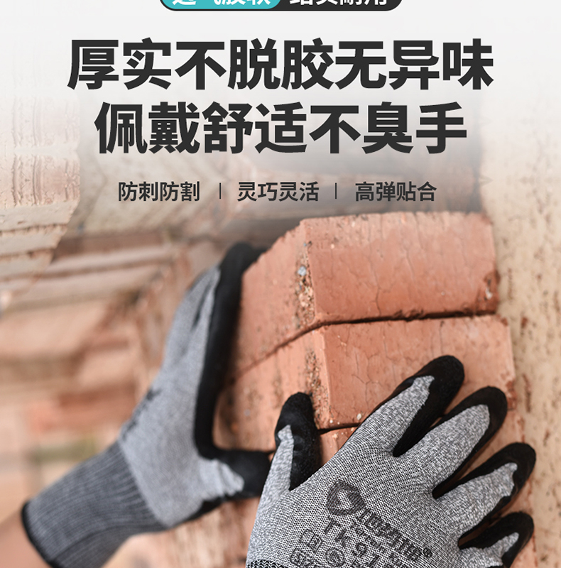 ДомМагазинПерчатки, стойкие к порезамРезиновые защитные перчатки с текстурой, нескользящие, износостойкие, воздухопроницаемые, подходят для сухих работ и строительных площадок, устойчивы к порезам и проколам.