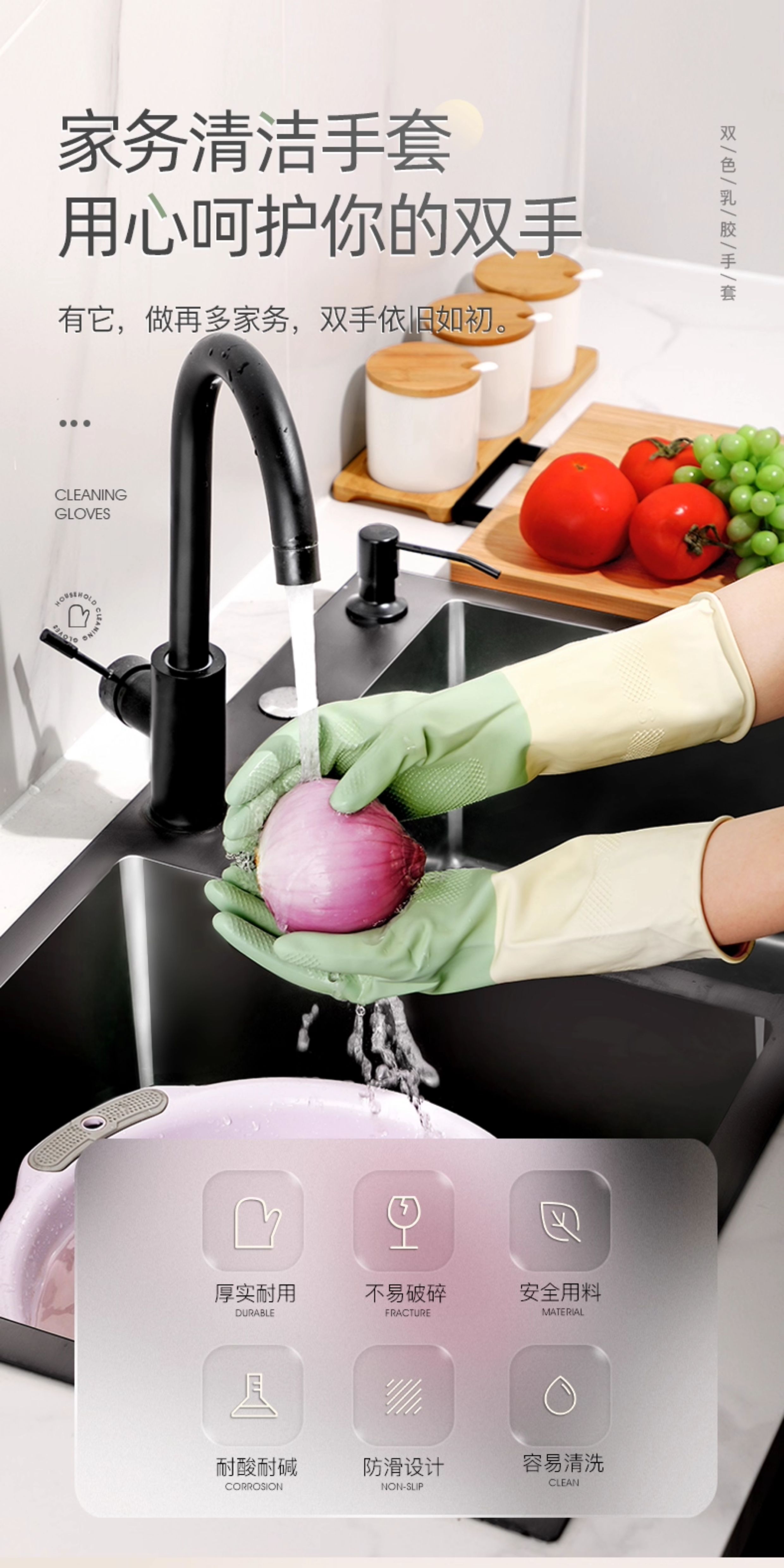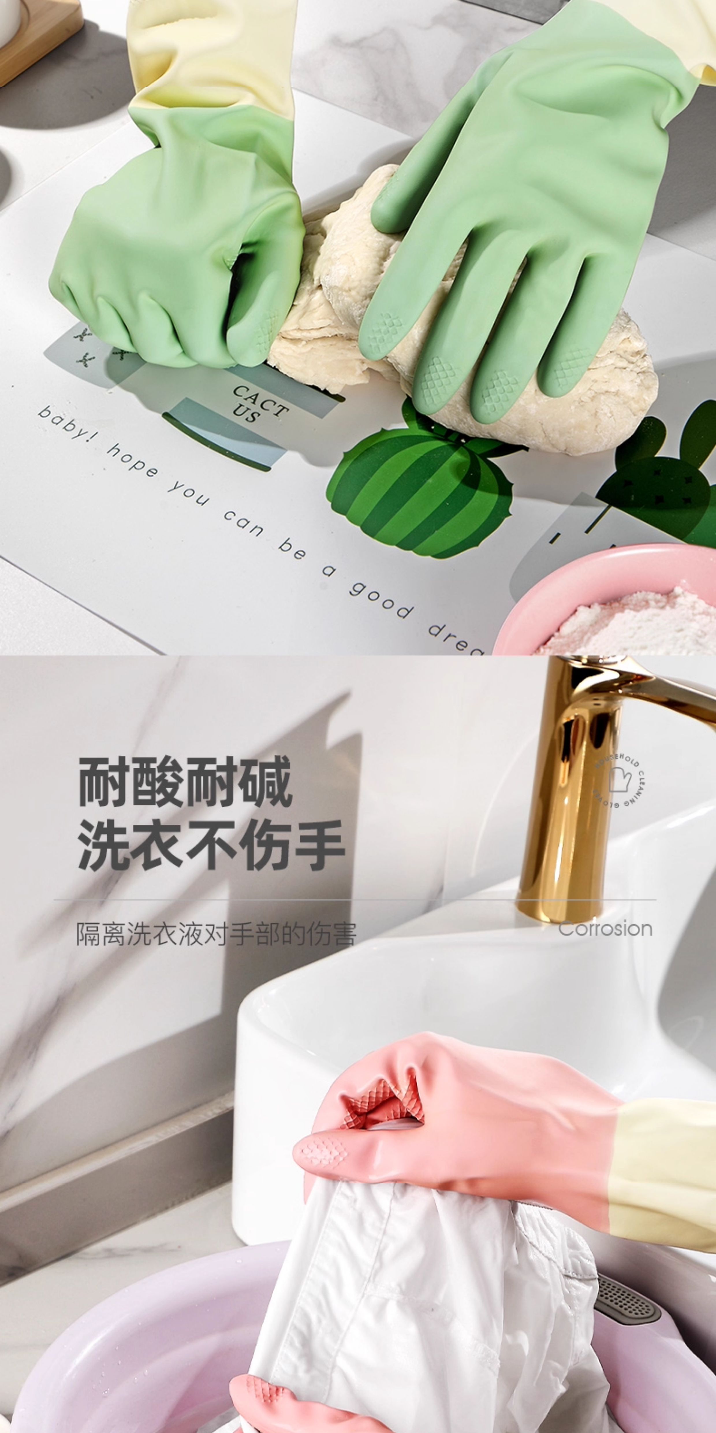 Резиновые хозяйственные перчатки для мытья посуды, водонепроницаемые, устойчивые к порезам, долговечные, подходят для использования на кухне, мытья кастрюль, овощей и одежды; для женской уборки и санитарии.