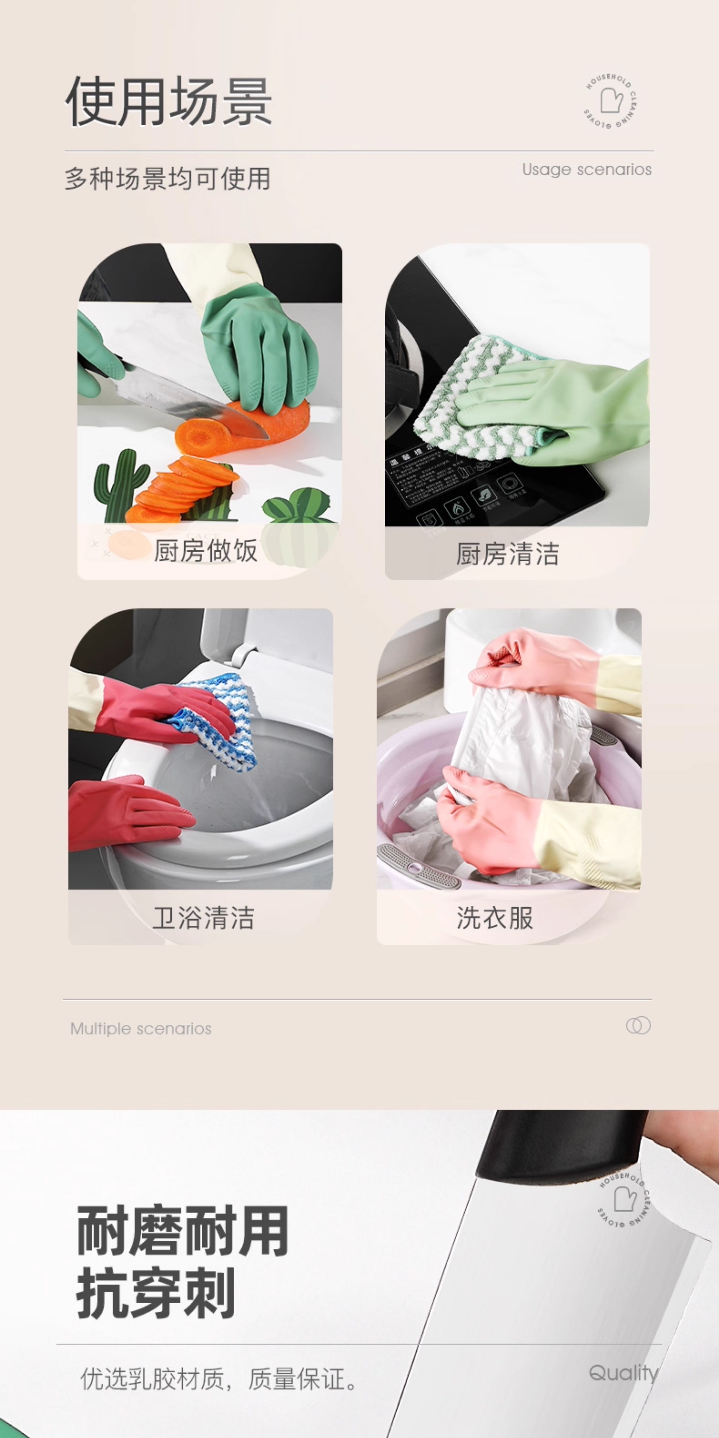 ДомМагазинПерчатки, стойкие к порезамРезиновые хозяйственные перчатки для мытья посуды, водонепроницаемые, устойчивые к порезам, долговечные, подходят для использования на кухне, мытья кастрюль, овощей и одежды; для женской уборки и санитарии.
