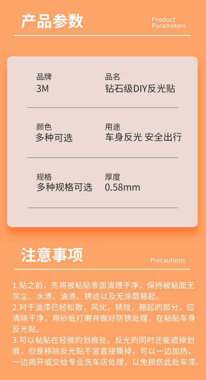 3m钻石级反光贴 pvc夜间强烈反光条汽车电动车摩托车警示反光贴