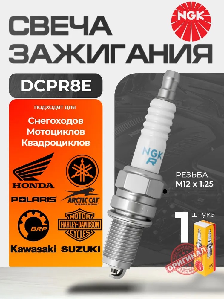 Свеча зажигания NGK DCPR8E Для квадроциклов, мотоциклов, питбайков (BMW BOMBARDIER DUCATI HARLEY DAVIDSON KTM POLARIS)