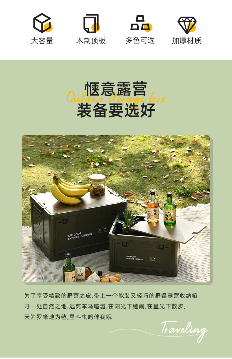ДомМагазинАвтоцистерна для погрузки кузоваСкладной ящик для кемпинга на открытом воздухе, багажник автомобиля, деревянный чехол, ящик для хранения вещей для пикника на природе, большой ящик для хранения дома