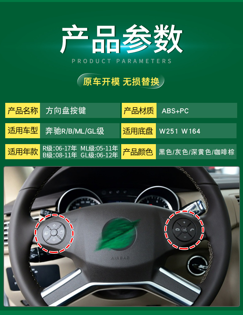 ДомМагазинрулевое колесоСовместимо с кнопками многофункционального рулевого колеса Mercedes-Benz R/M Class ML320 ML350 GL400 R300 R320 R350