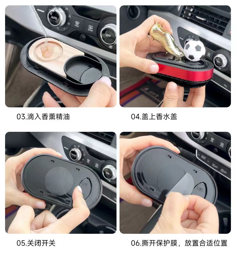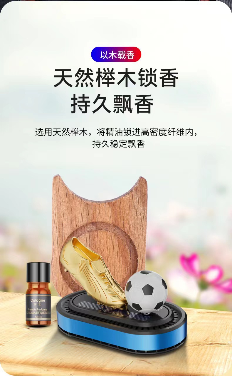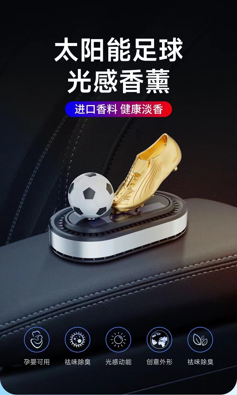 Солнечные вращающиеся футбольные бутсы с золотыми украшениями, трансграничный держатель для духов для автомобиля, новая автомобильная ароматерапия, легкий, стойкий аромат