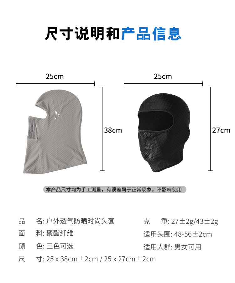 冰丝防晒骑行头套春夏季摩托车头盔装备通用帽摩托车防风防晒面罩