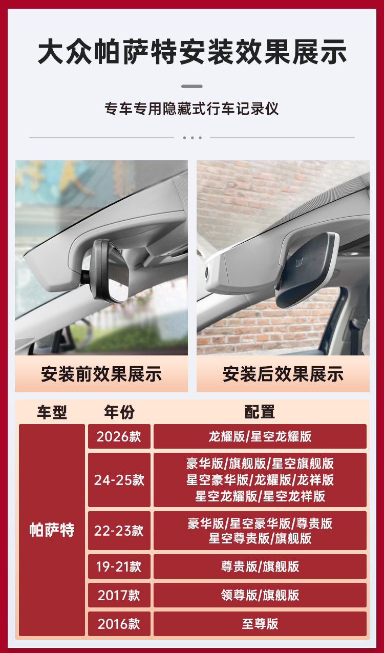 ДомМагазинвидеорегистраторСпециальная камера для Volkswagen Passat 2026 года, скрытая на заводе, без проводов, 4K Ultra HD (модели 11–2025)