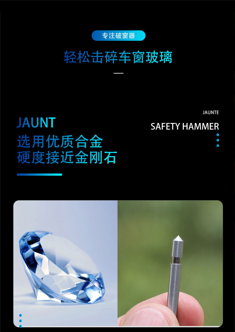 ДомМагазинАвтомобильные аварийные инструментыСтеклобой JAUNT за 1 секунду, аварийное устройство для предотвращения затопления автомобиля, пружинный аварийный эвакуатор, автомобильный инструмент, портативный аварийный молоток