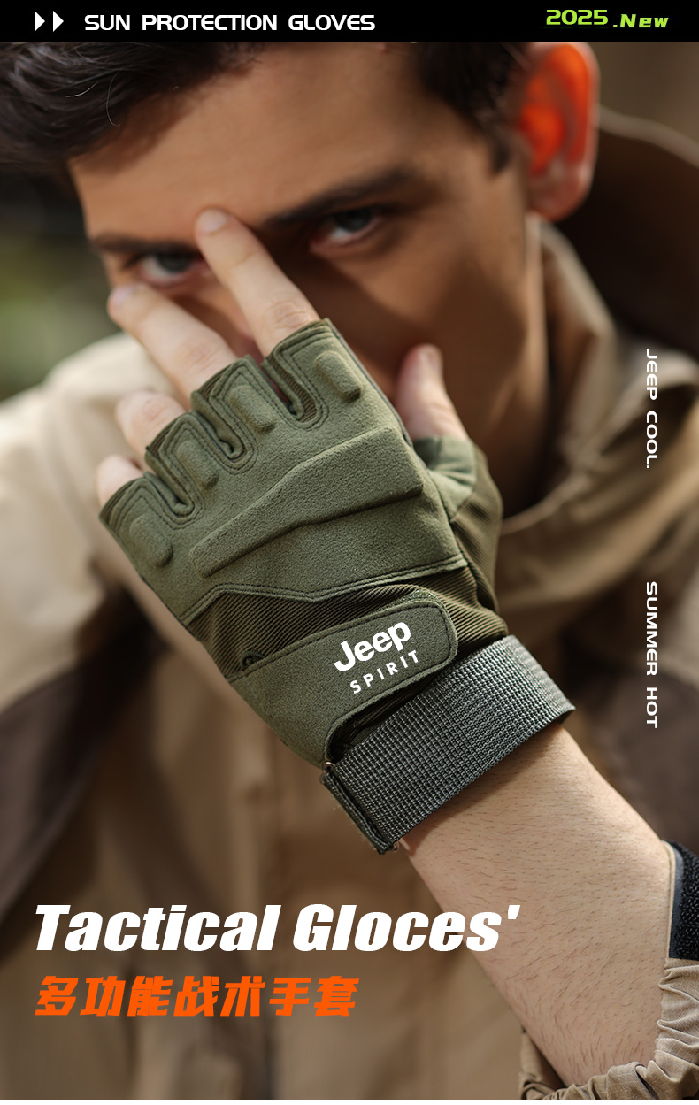 Тактические перчатки Jeep для мужчин, нескользящие, военная версия для энтузиастов, тренировочные, стойкие к порезам, износостойкие, боевые, Black Hawk с полупальцами, для велоспорта, альпинизма, спорта.