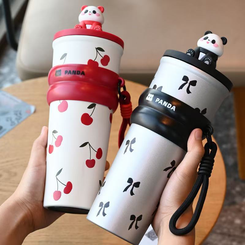 Термос-чашка в стиле панды, изображающий знаменитость из Интернета, большой емкости, чашка для кофе из нержавеющей стали 316, симпатичная детская чашка с трубочкой
