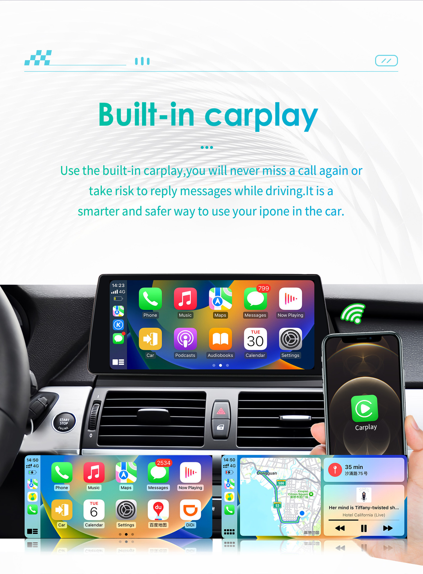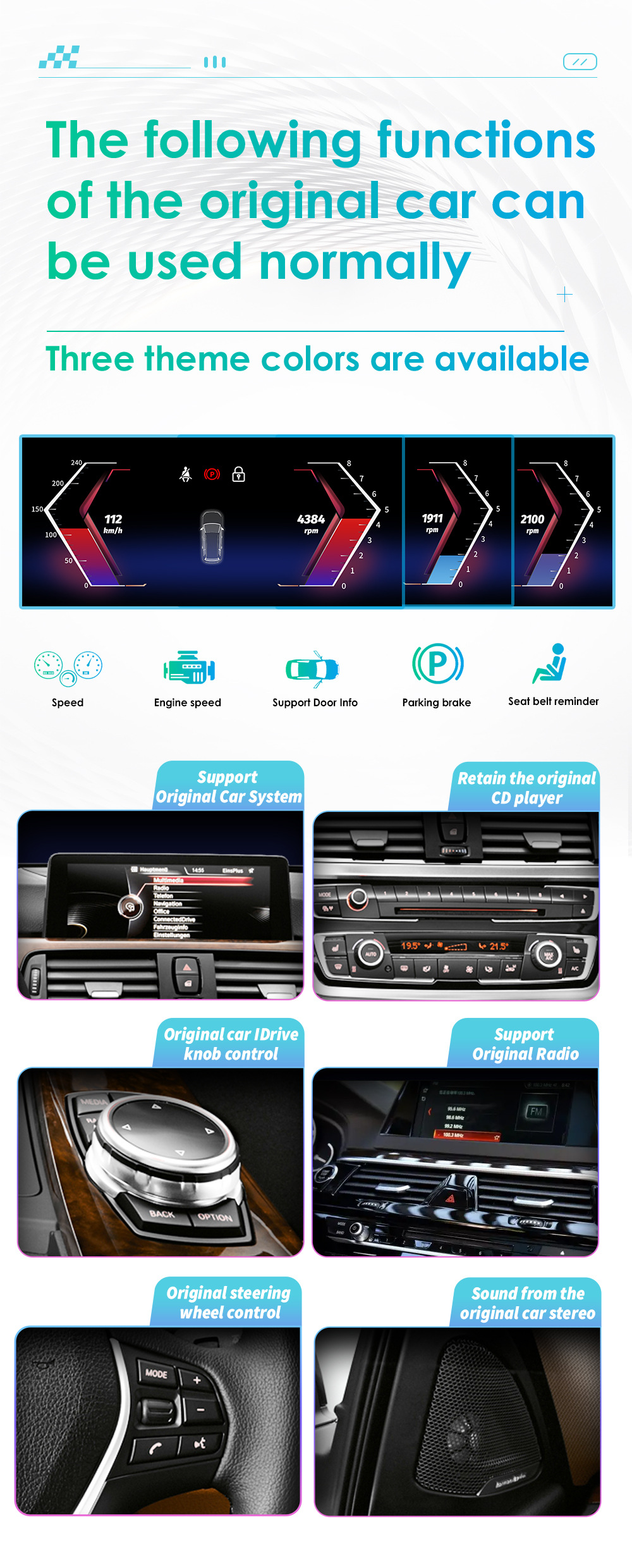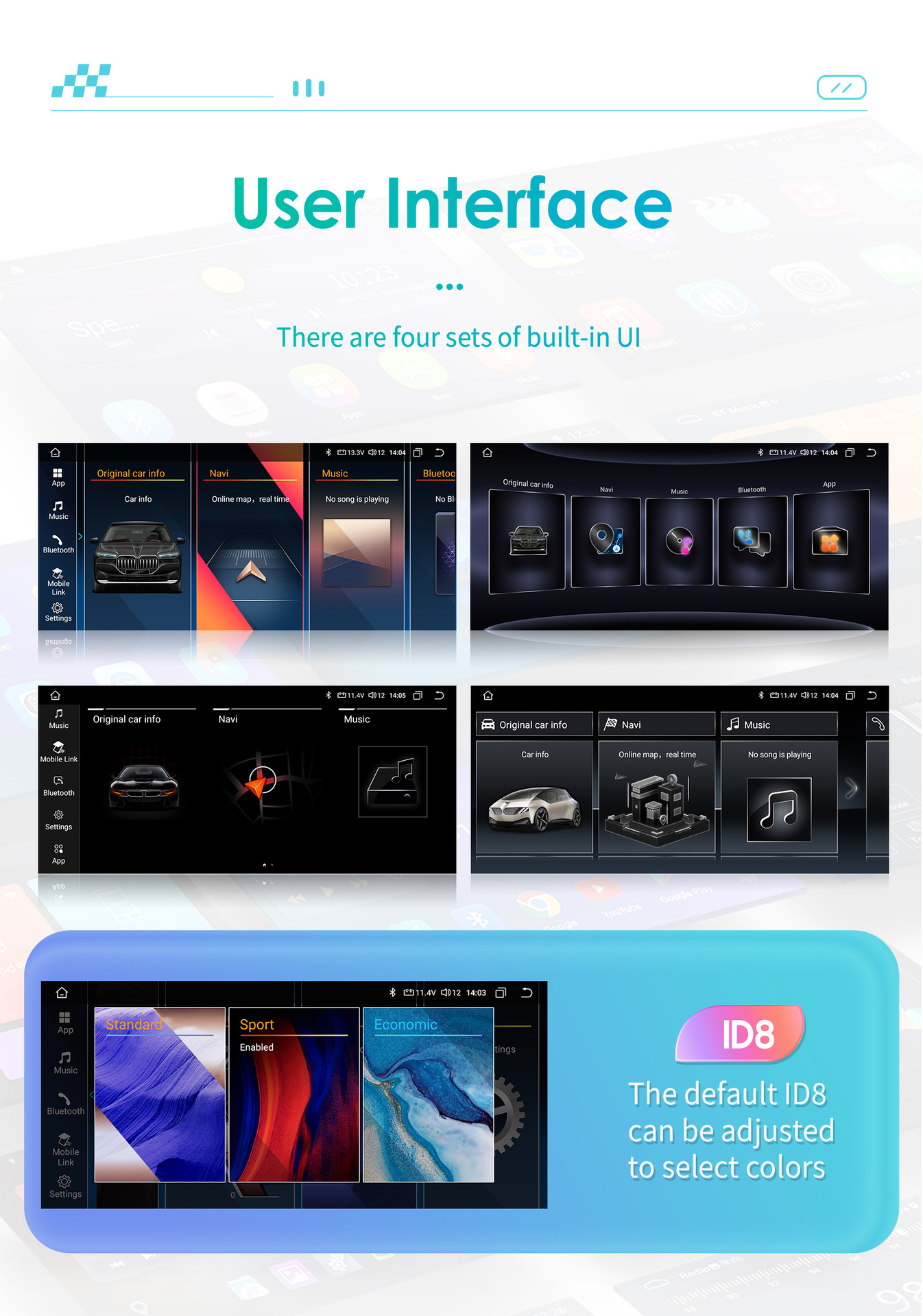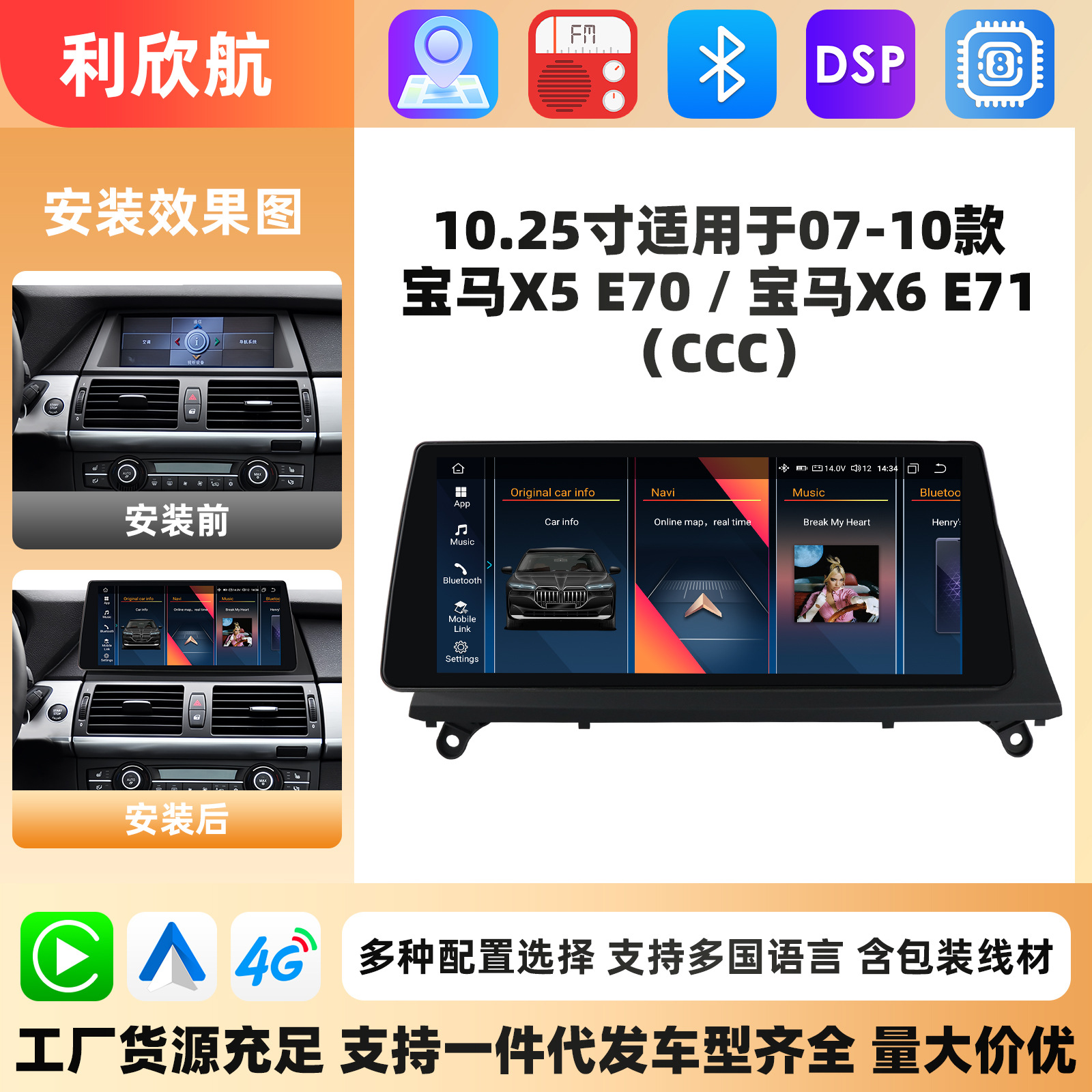 | Спецификация | Версия 8581A Carplay с 8+128G WIFI+4G LTE, восьмиядерный процессор, версия 8581A Carplay с 6+64G WIFI+4G LTE, восьмиядерный процессор, версия 8581A Carplay с 4+32G WIFI+4G LTE, восьмиядерный процессор, версия 8581A Carplay с 2+32G WIFI, четырехъядерный процессор |
