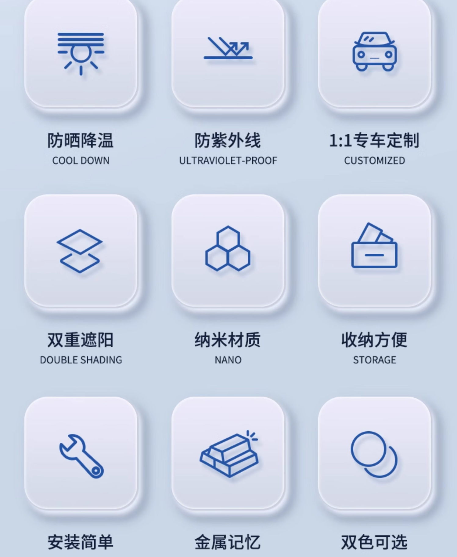 | размер | Большой солнцезащитный козырек 145смX80см, малый солнцезащитный козырек 140смX70см |