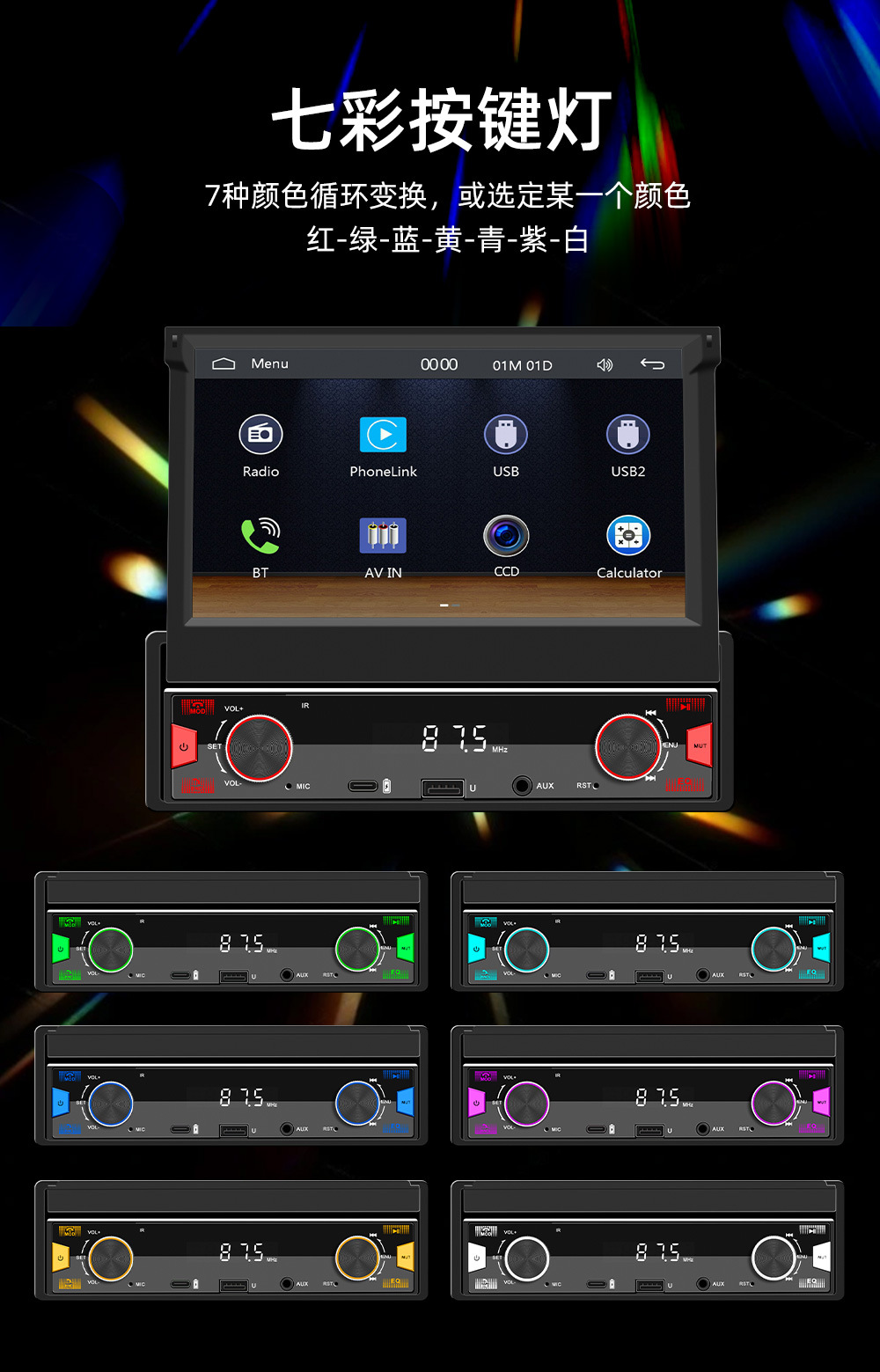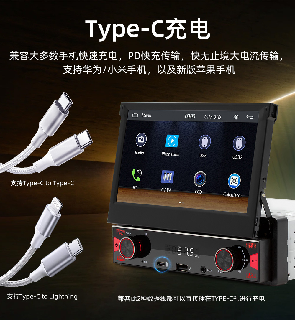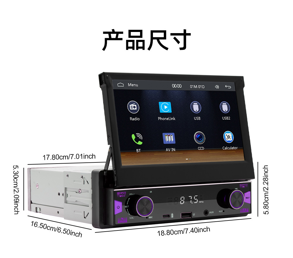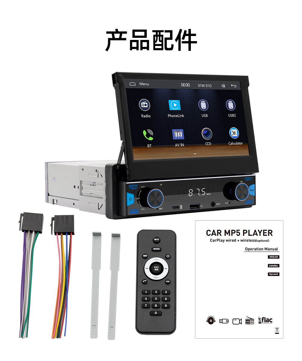 7英寸手动伸缩屏车载MP5