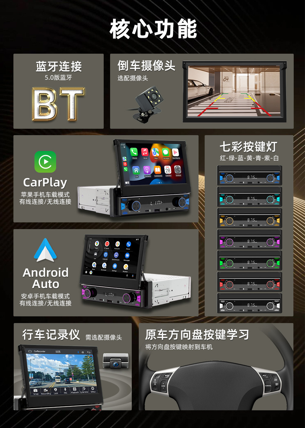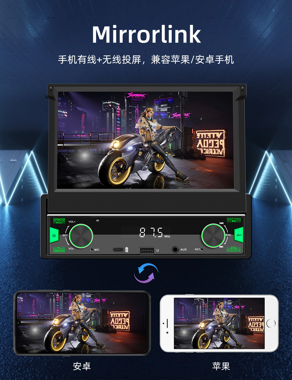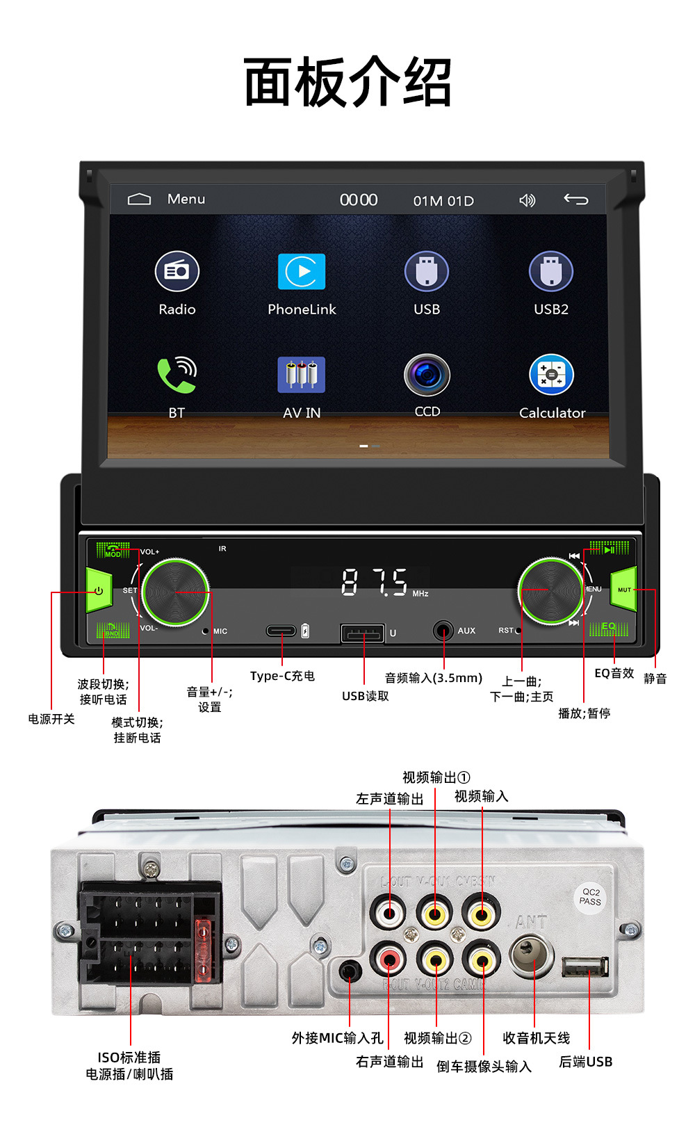 7英寸手动伸缩屏车载MP5