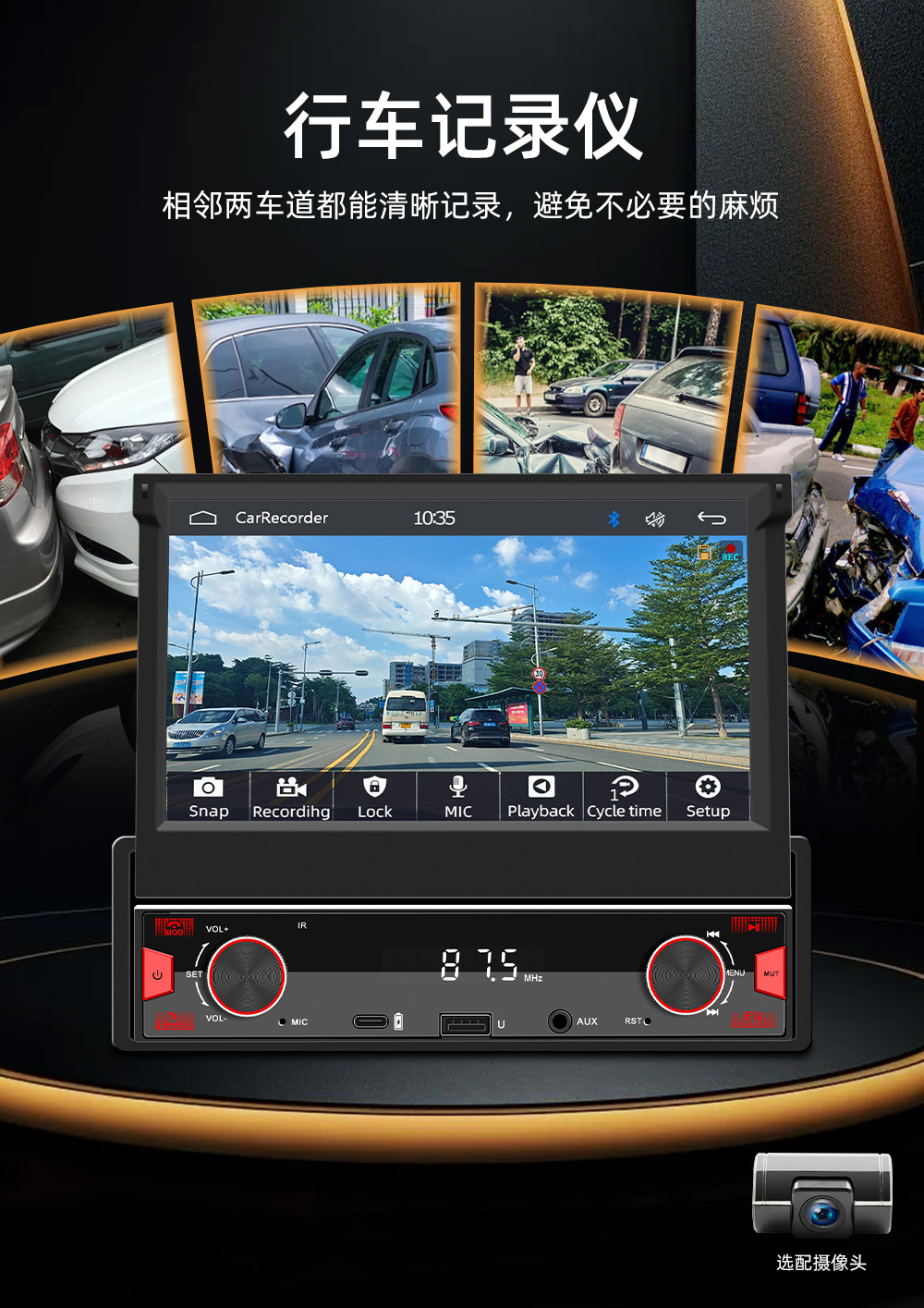 •行车记录仪(记录仪选配),实时路况记录,回放视频清晰让您行车安全有保障