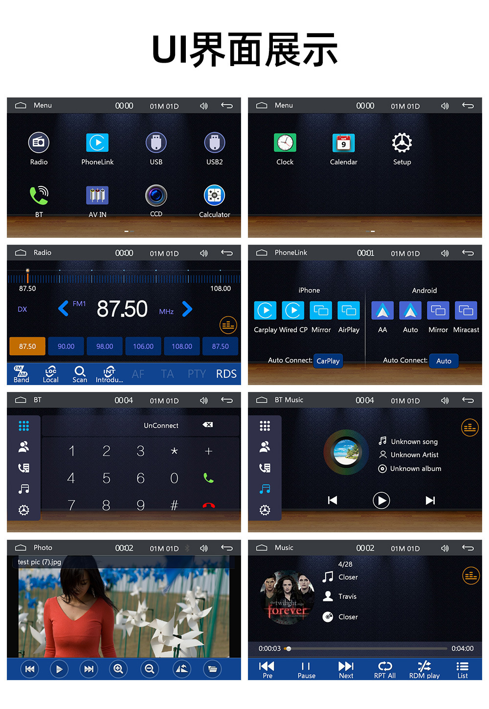 WiFi频率:可选2.4G、5.2G、5.8G(根据连接手机的热点的频段自动切换,连接安卓AUTO和苹果CARPLAY时用)