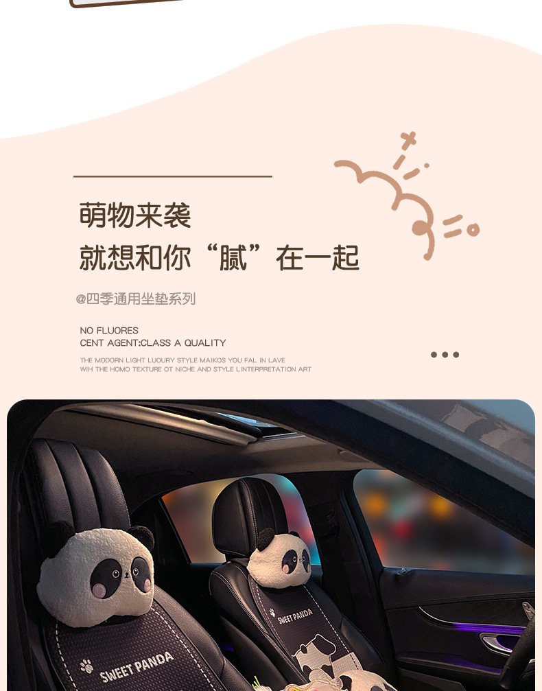 | Цвет | Подушка сиденья Panda Ice Silk (задний ряд), подушка сиденья Panda Ice Silk (спинка), подушка сиденья Panda Ice Silk (передний ряд, цельная), подголовник Panda (одинарный), поясничная поддержка Panda (одинарный). |