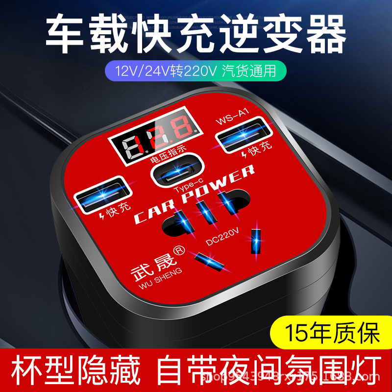 ДомМагазинАвтомобильное зарядное устройствоУниверсальный инвертор 12 В/24 В/220 В для легковых и грузовых автомобилей с чашечным типом