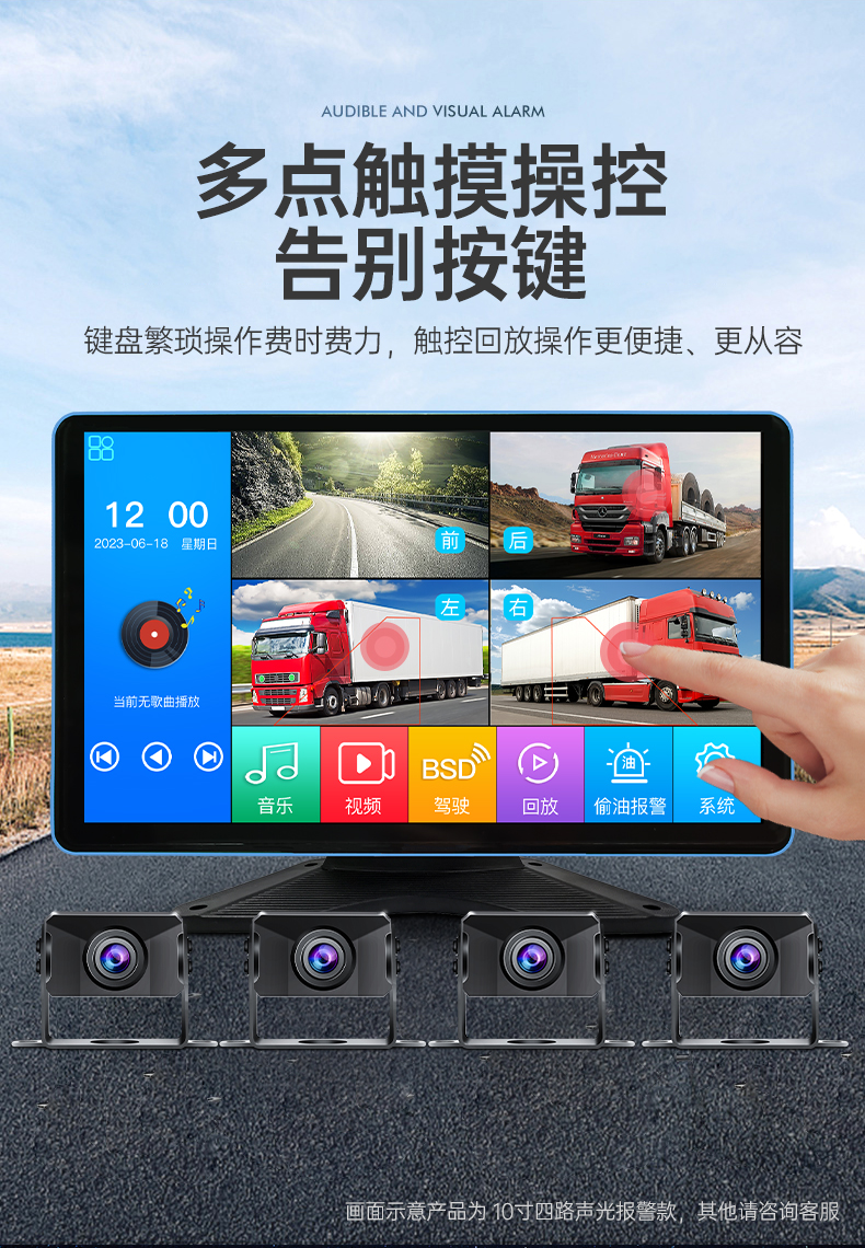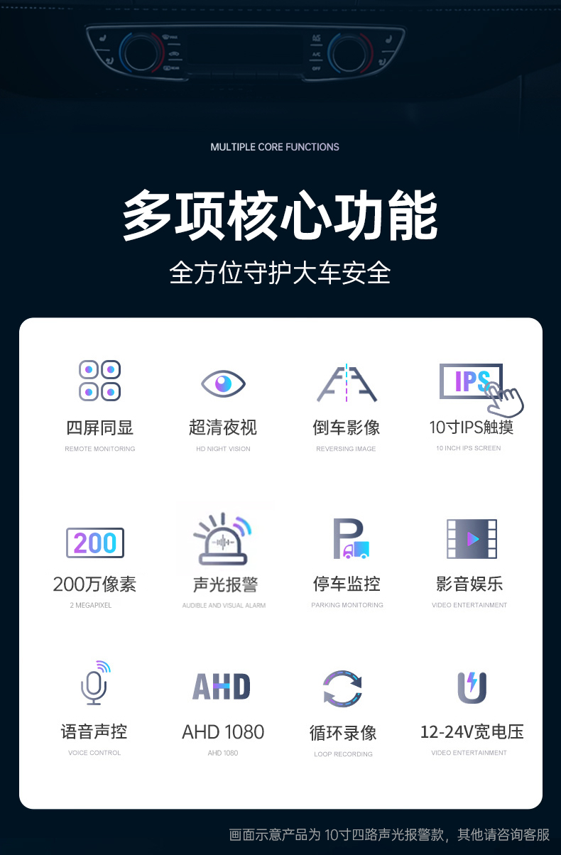ДомМагазинвидеорегистраторЧетырехканальная система ночного видения 24 В HD для грузовиков, система контроля слепых зон, звуковая и световая сигнализация, а также радар заднего хода 12 В.